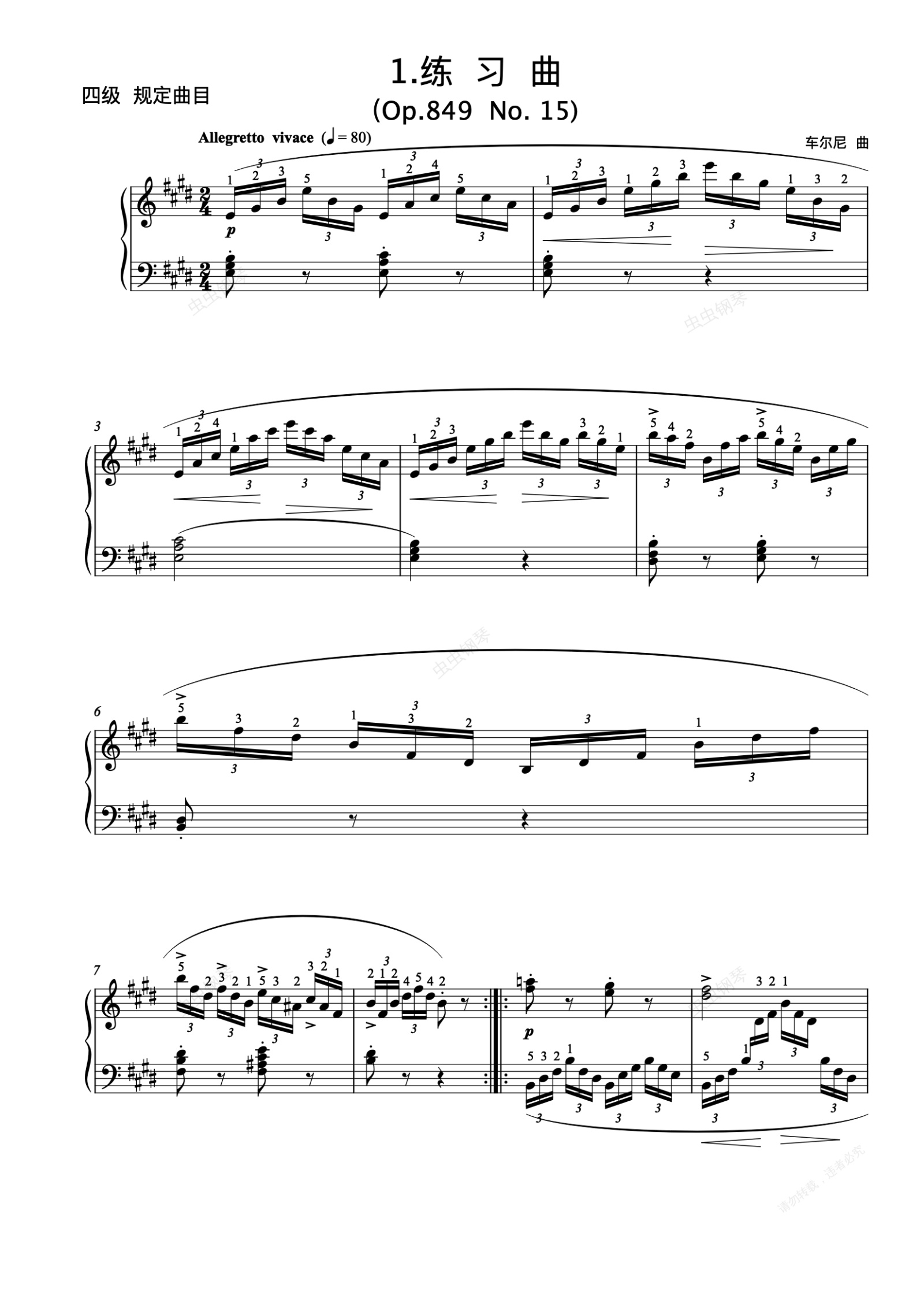 钢琴谱:4级-B-1. 练习曲(Op.849 No.15)