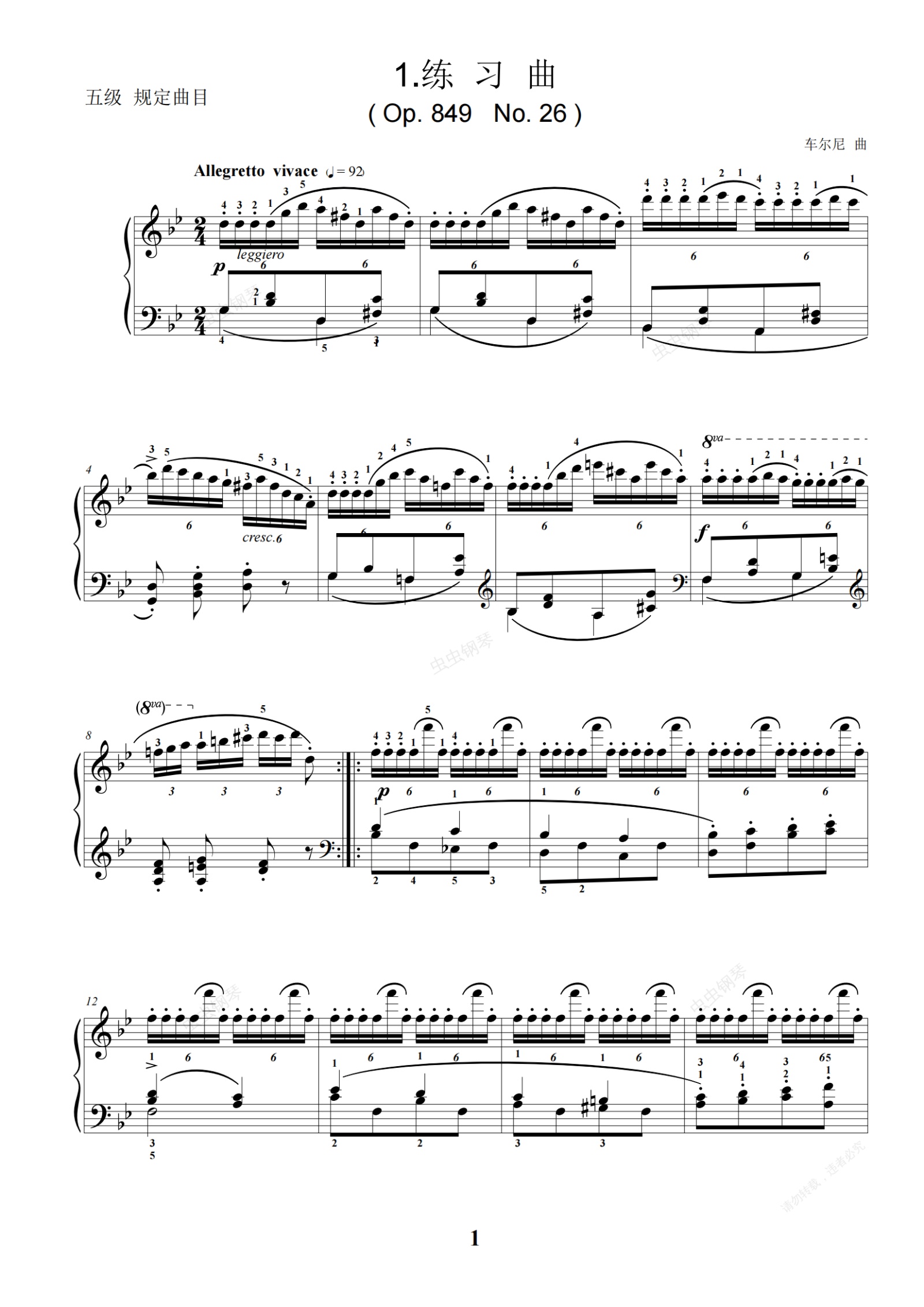 钢琴谱:5级-A-1. 练习曲(Op.849 No.26)