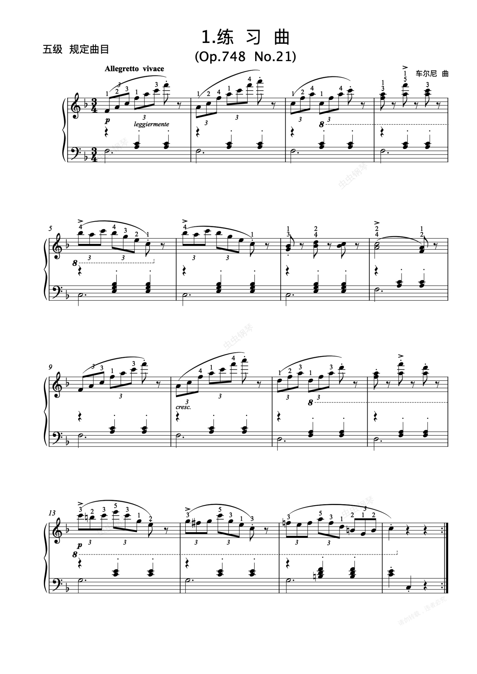 钢琴谱:5级-B-1. 练习曲(Op.748 No.21)