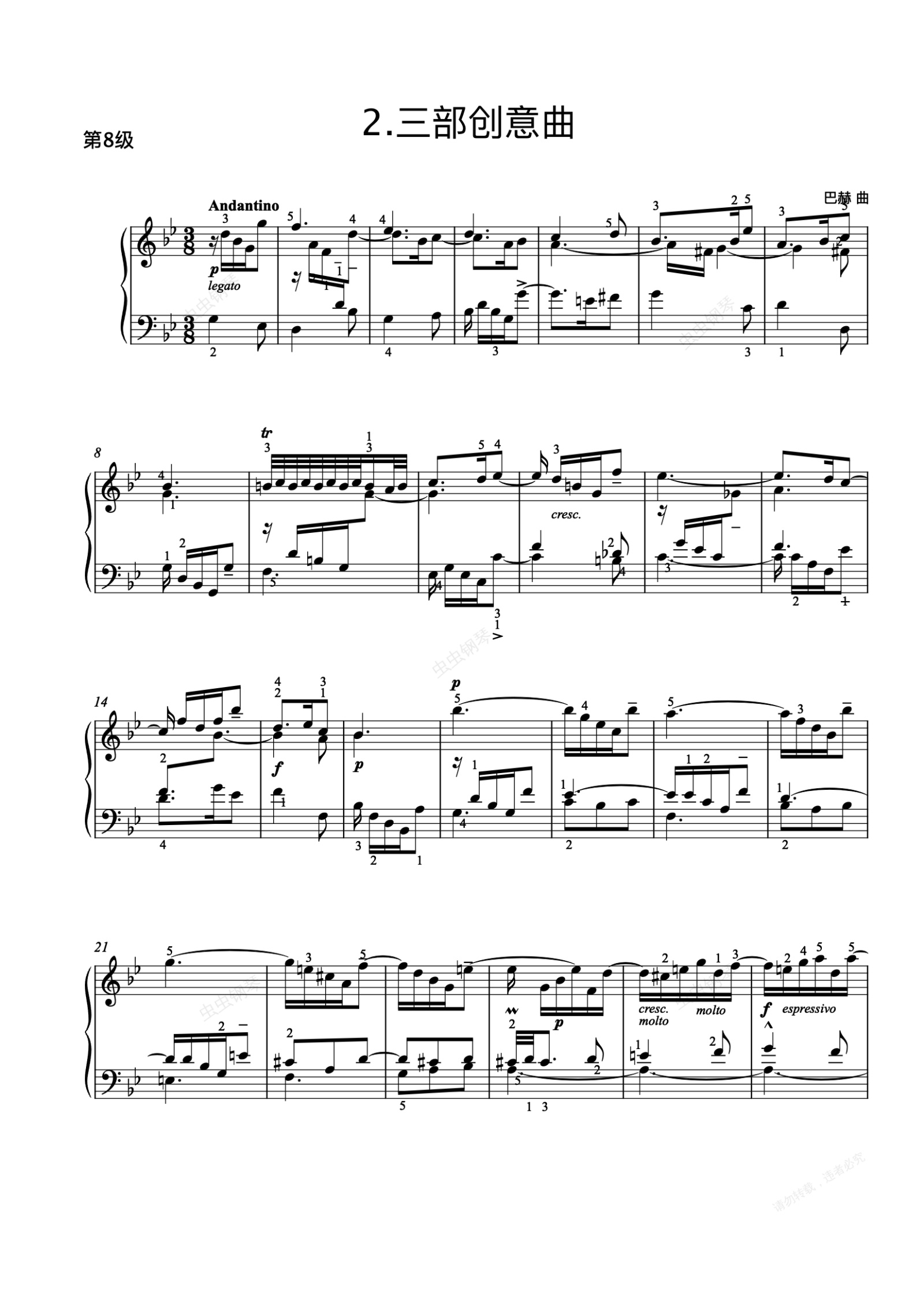 钢琴谱:8级-A-2. 三部创意曲(No.11)