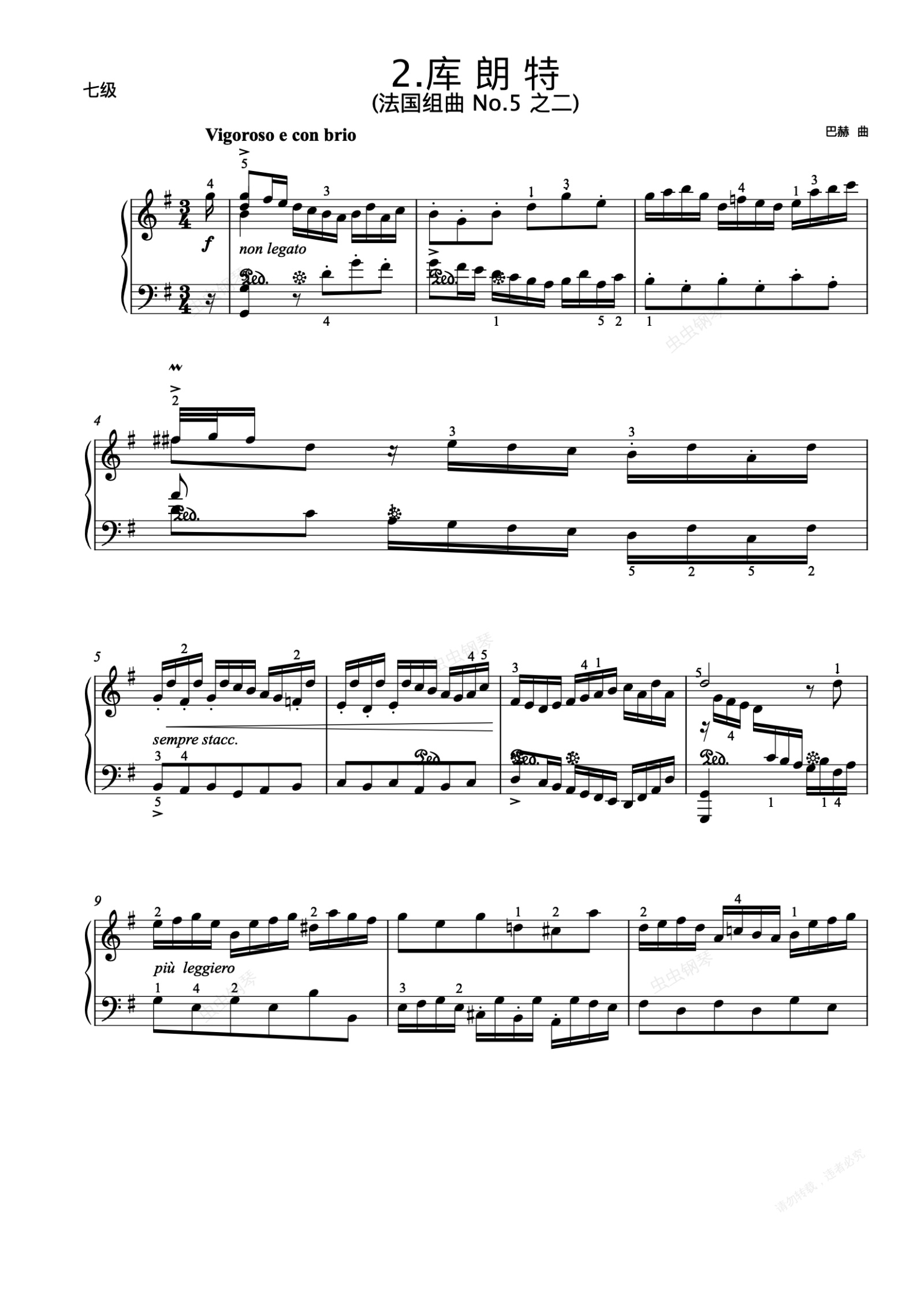 钢琴谱:7级-B-2. 库朗特(法国组曲No.5之二)