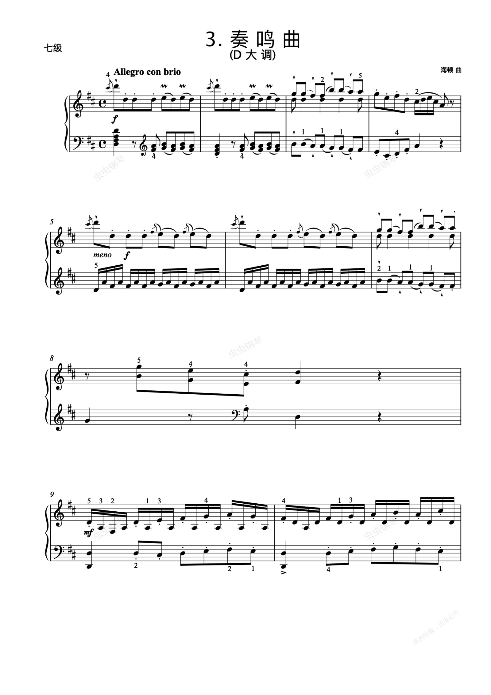 钢琴谱:7级-B-3. 奏鸣曲(D大调 海顿)