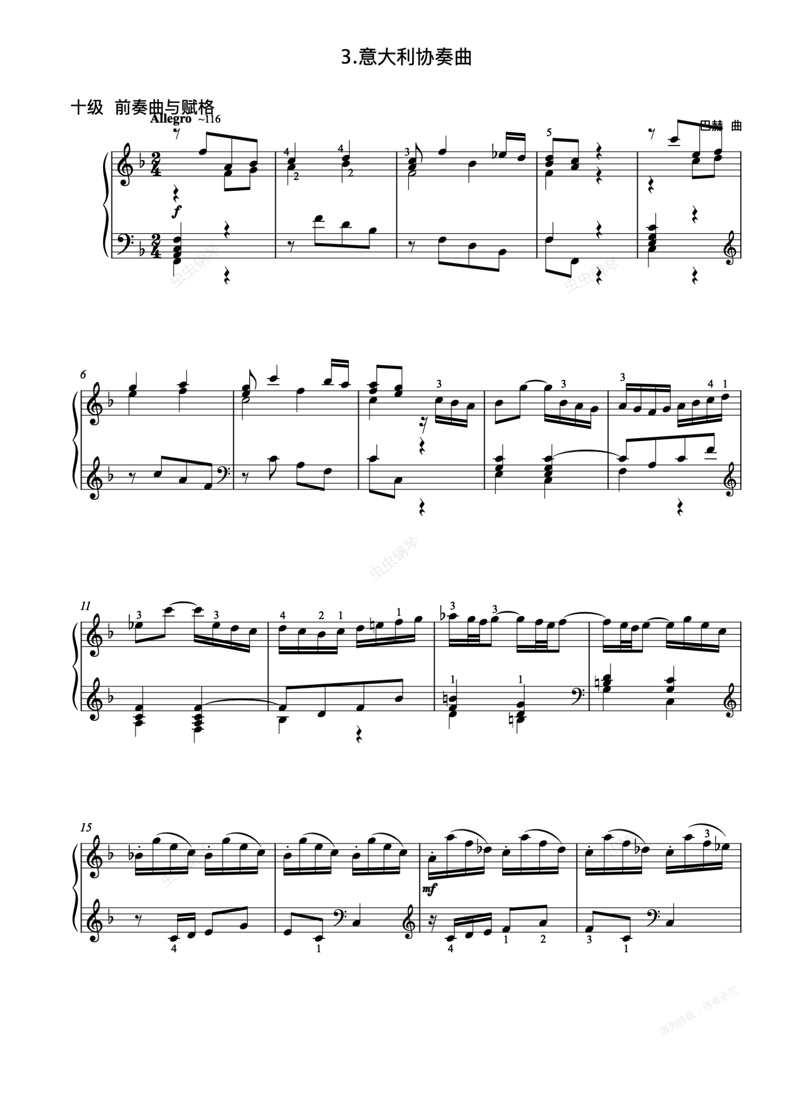 钢琴谱:10级-前奏与赋格-3. 意大利协奏曲