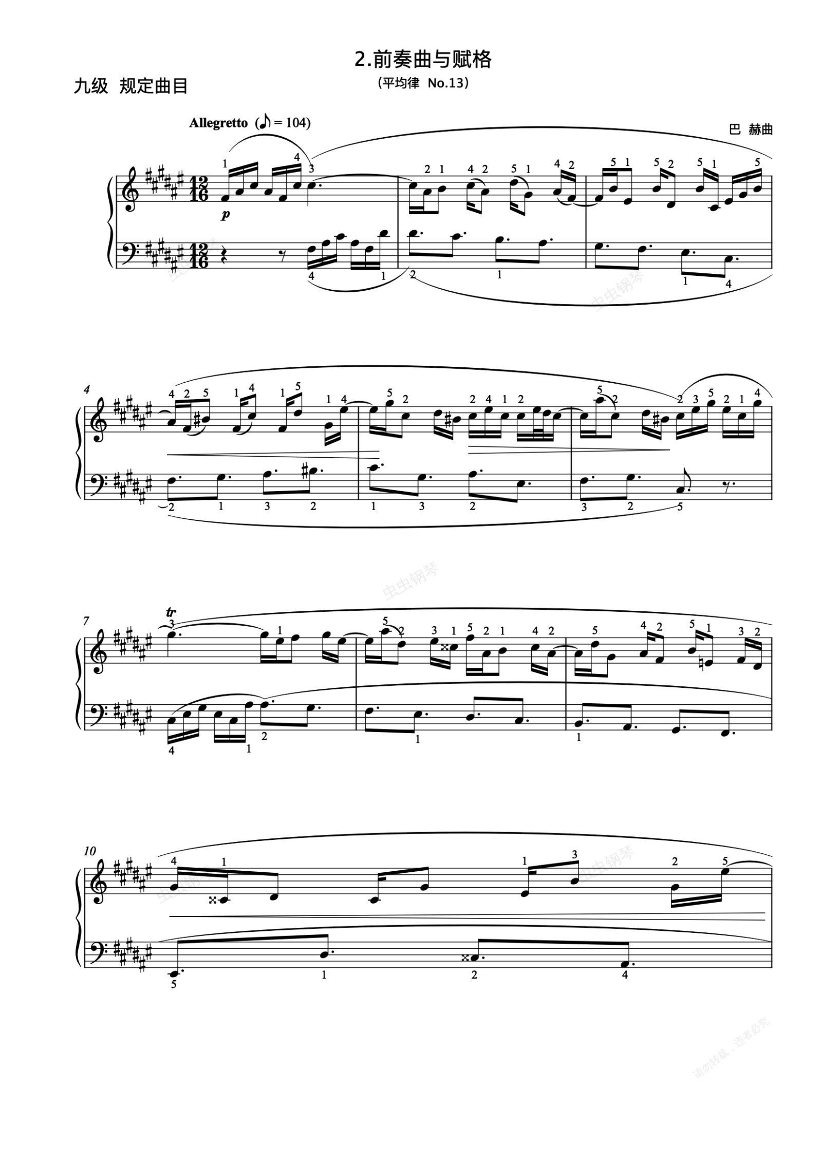 钢琴谱:9级-B-2. 前奏曲与赋格(No.13)