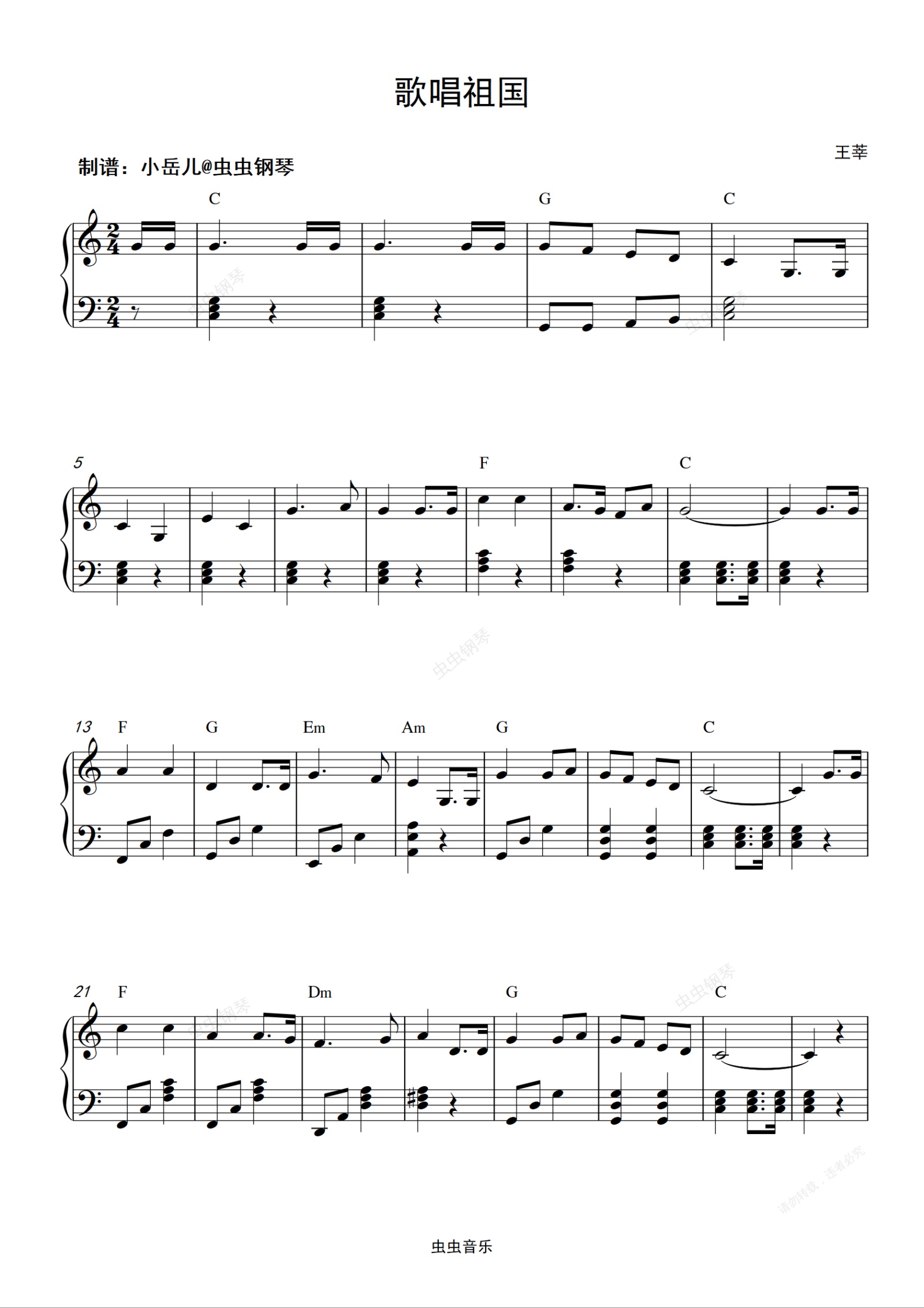 您的位置: 首页 > 钢琴谱库 > 歌唱祖国(C调简易版)钢琴谱-王莘