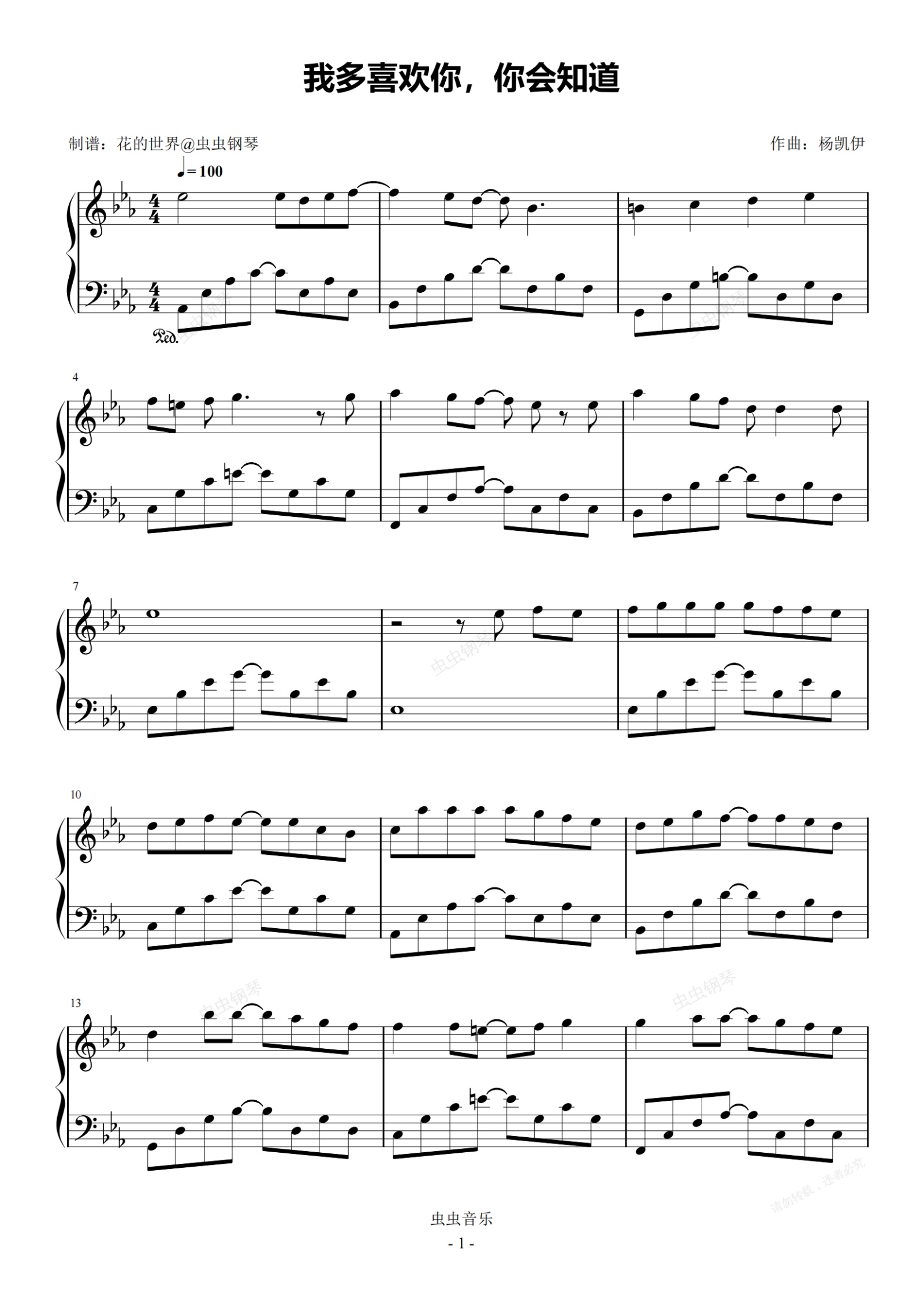 钢琴谱:我多喜欢你,你会知道 原调简易版 王俊琪