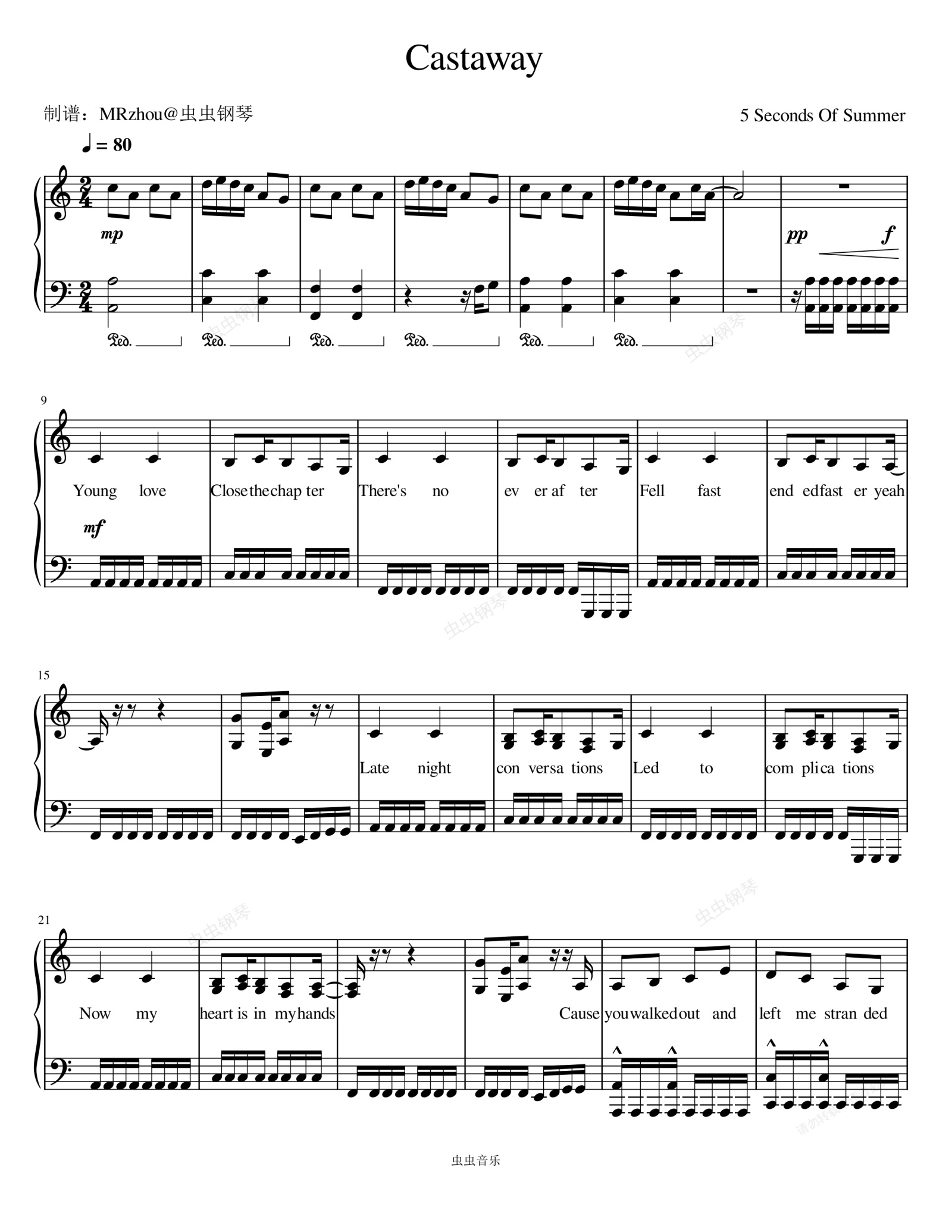 钢琴谱:Castaway - 5 Seconds Of Summer