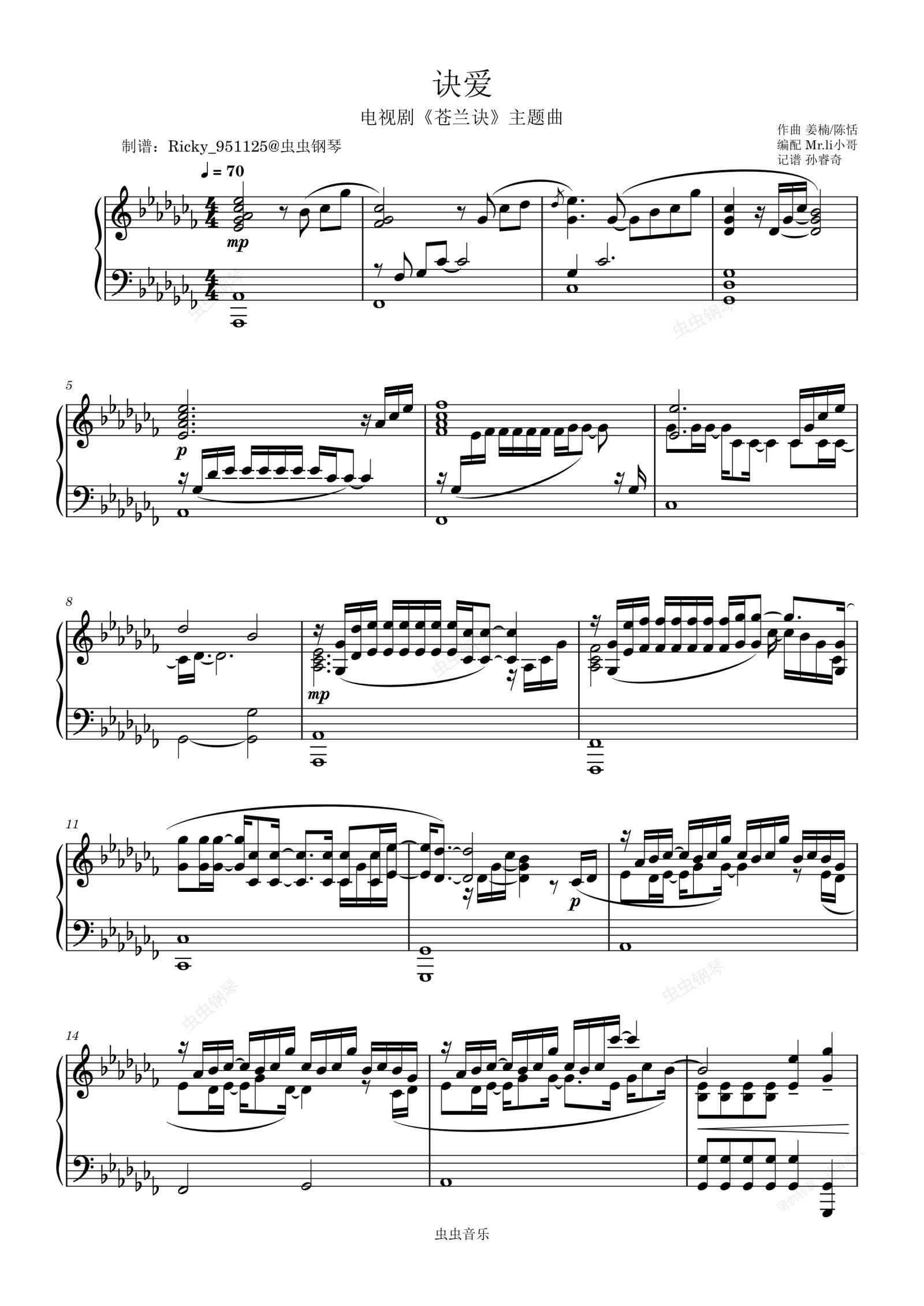 钢琴谱:诀爱