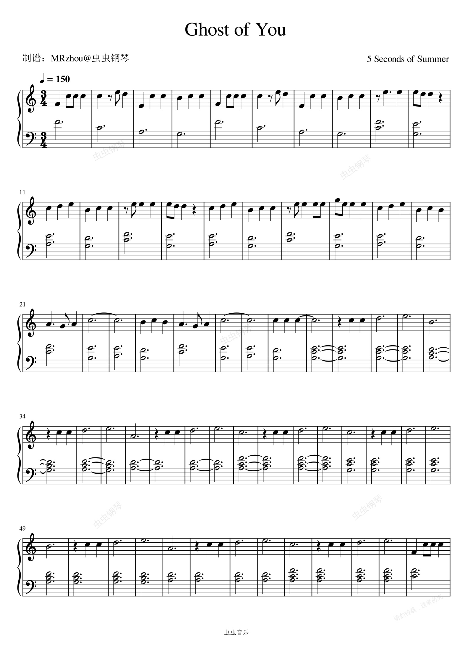钢琴谱:Ghost Of You - 5 Seconds Of Summer