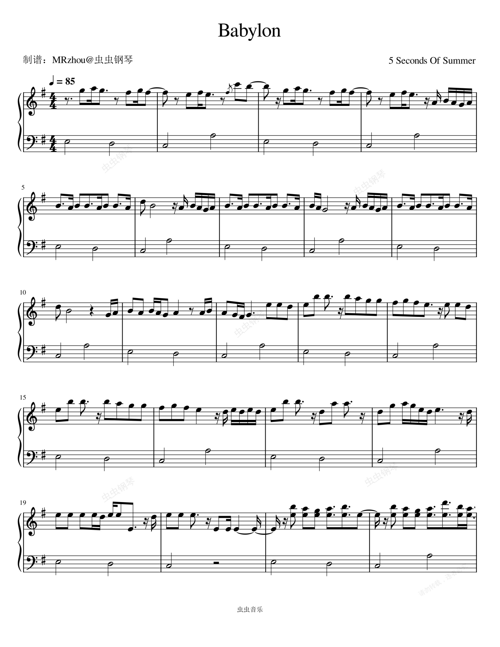 钢琴谱:Babylon - 5 Seconds Of Summer