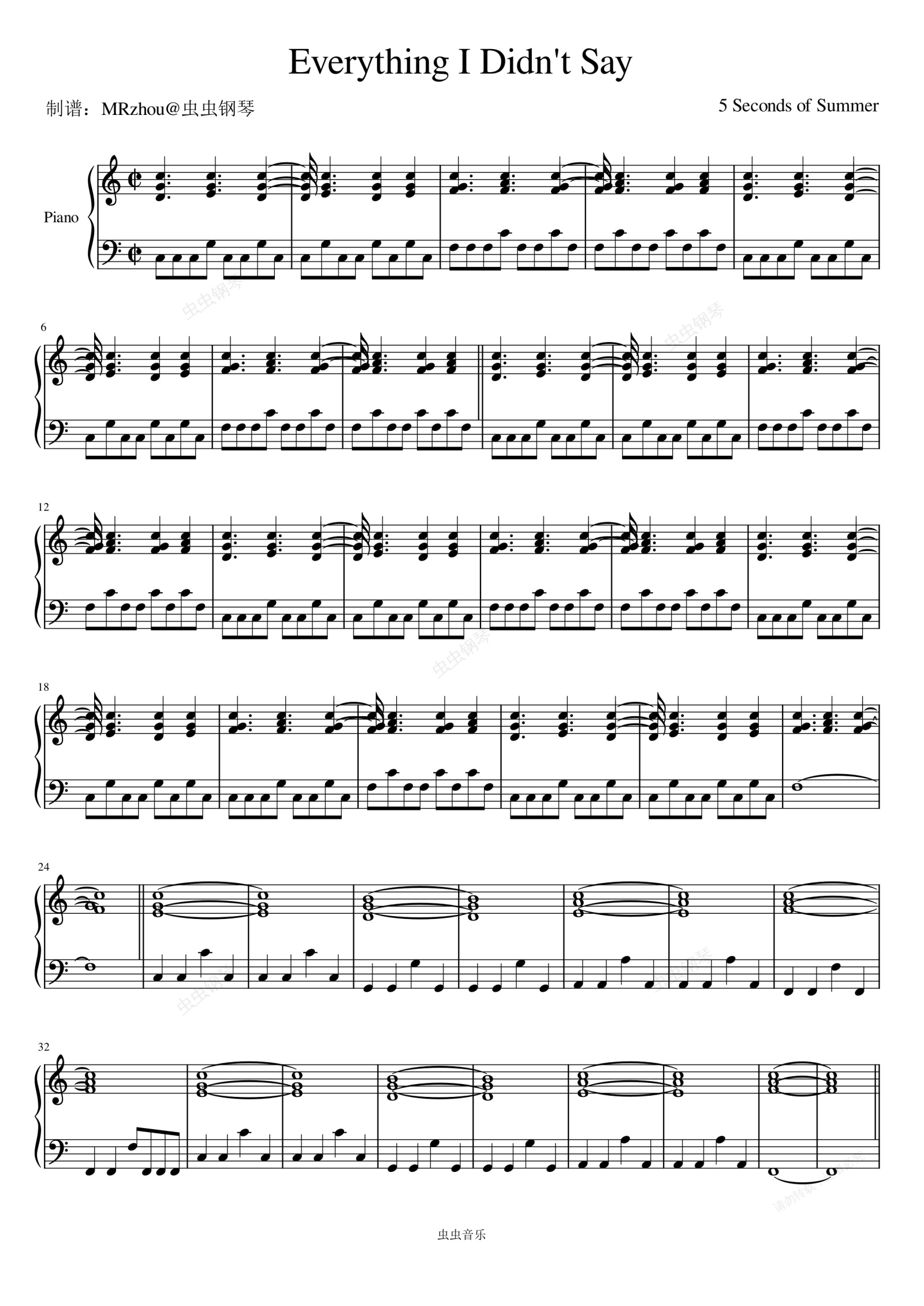 钢琴谱:Everything I Didn't Say - 5 Seconds Of Summer