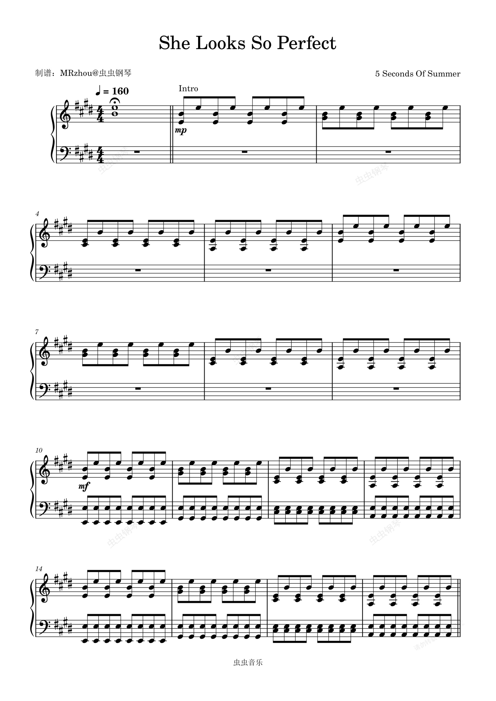 钢琴谱:She Looks So Perfect - 5 Seconds Of Summer