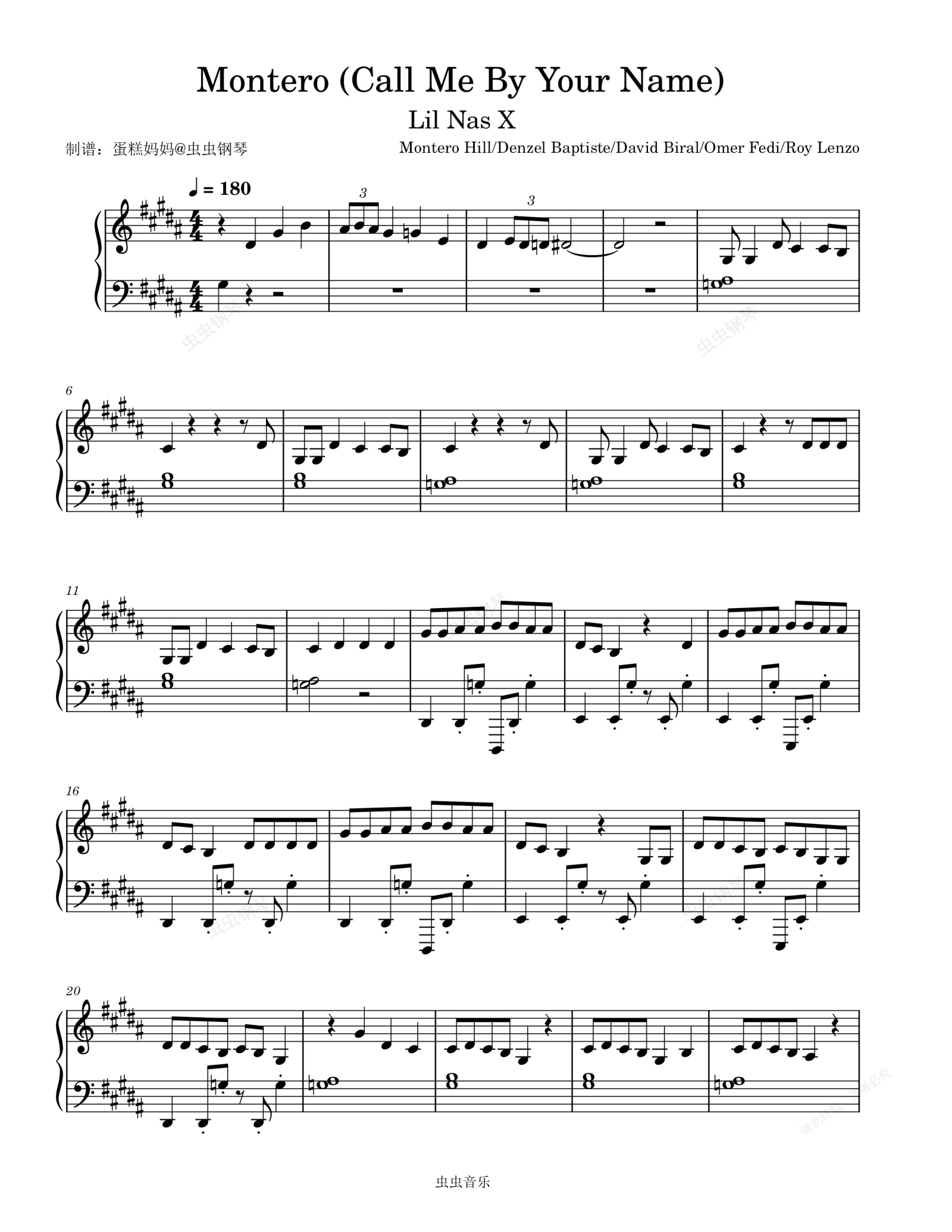 钢琴谱:MONTERO (Call Me By Your Name) (But Lil Nas X Makes All The Sounds With His Mouth|Explicit) - Lil Nas X