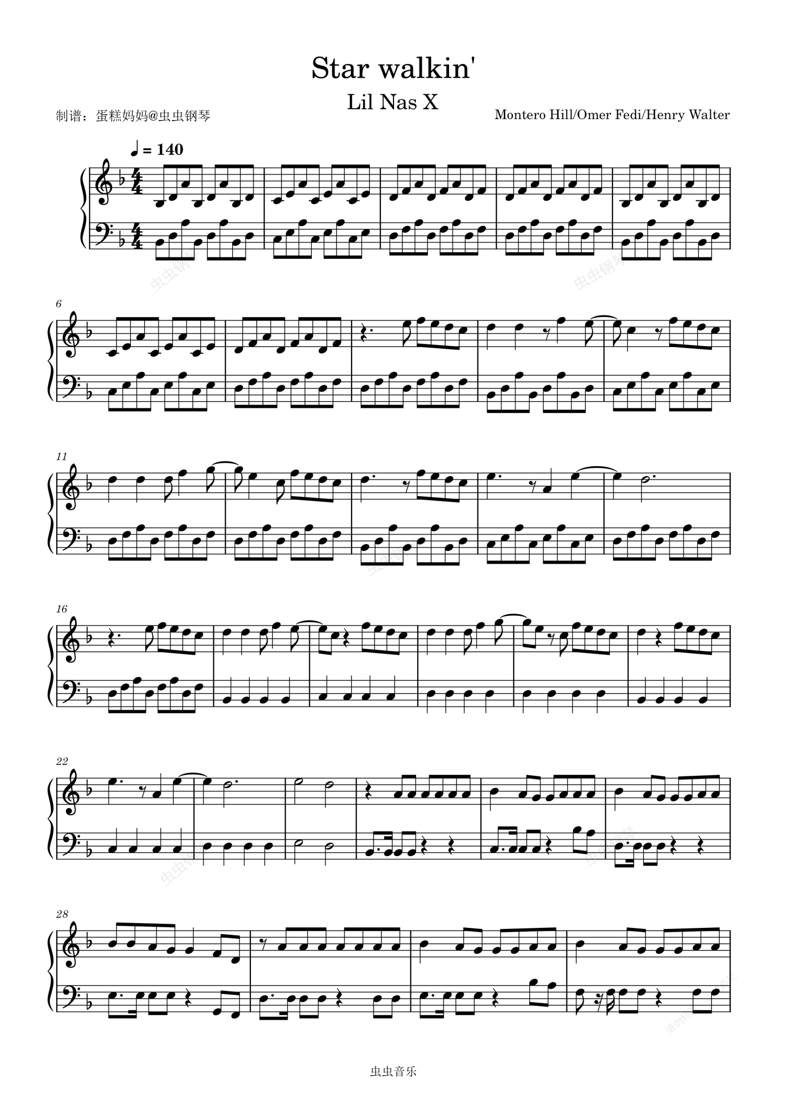钢琴谱:STAR WALKIN' (Clean)(2022英雄联盟全球总决赛主题曲) - Lil Nas X