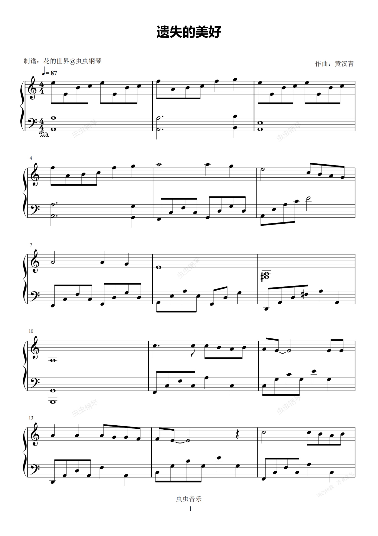 钢琴谱:遗失的美好 C调简易版 张韶涵