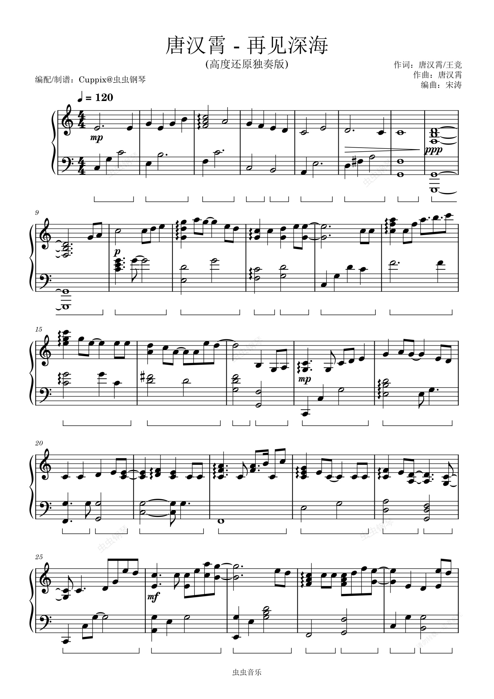 钢琴谱:《再见深海》高度还原独奏版 (唐汉霄,微亮的瞬间,《深海》电影告别曲)