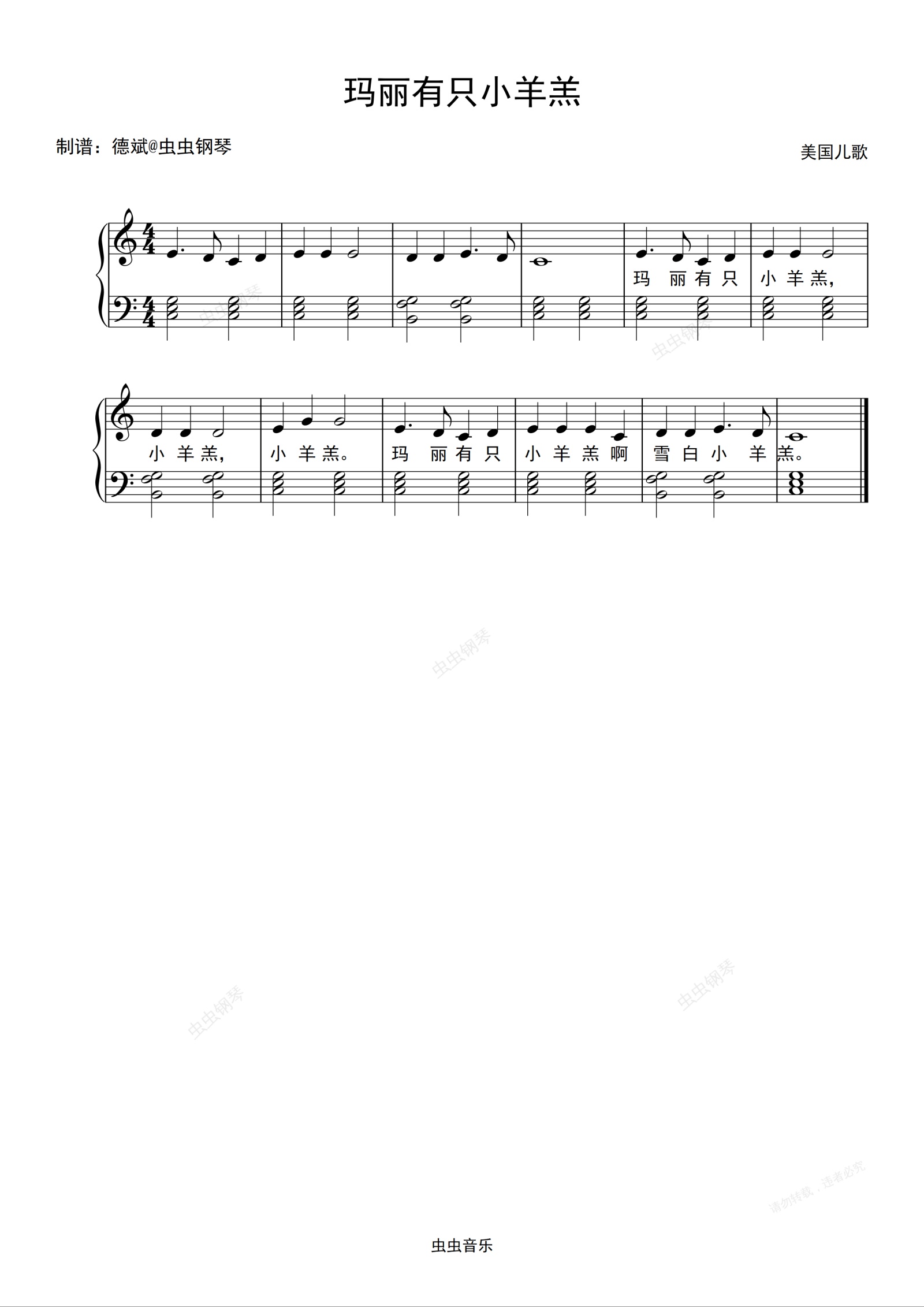 钢琴谱:玛丽有只小羊羔