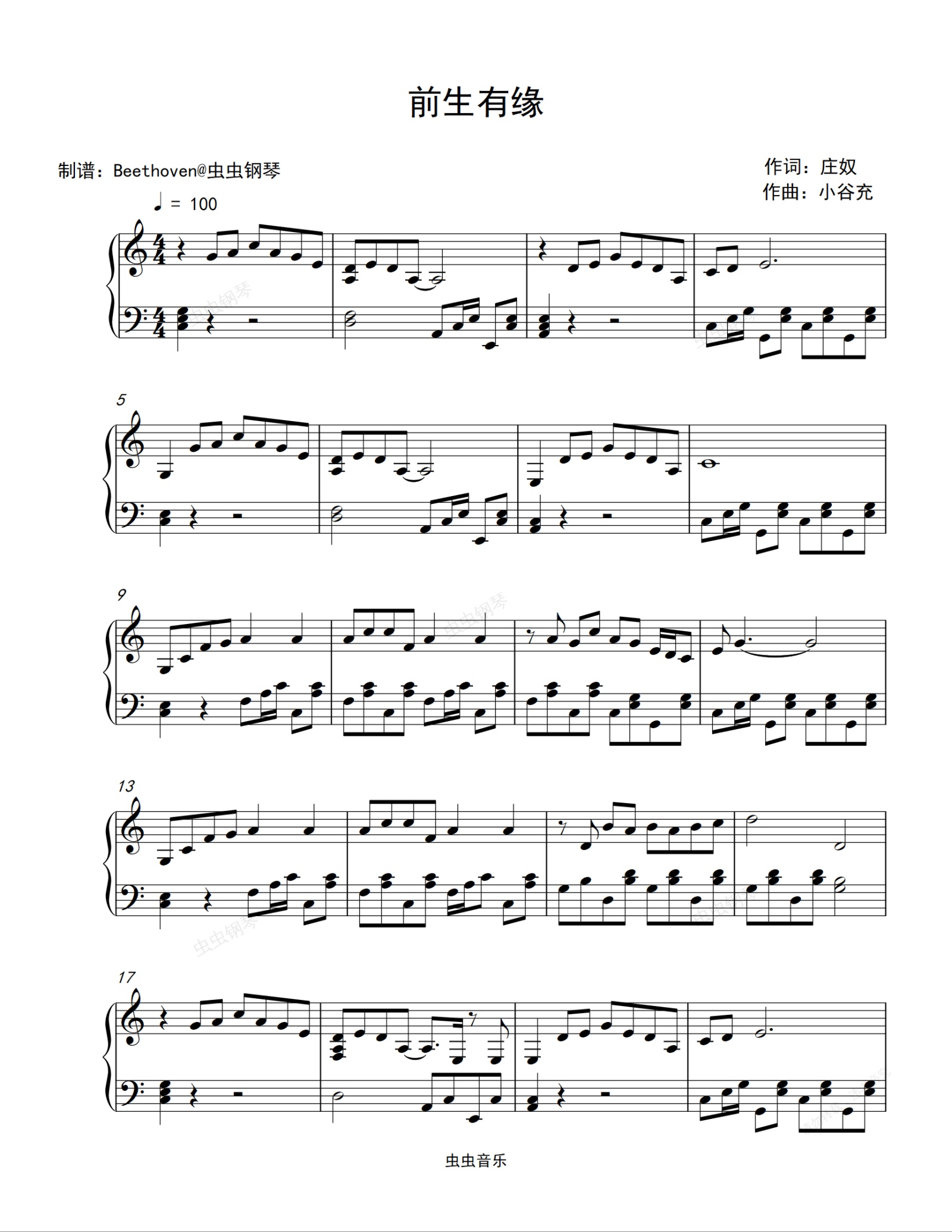 钢琴谱:前生有缘-邓丽君