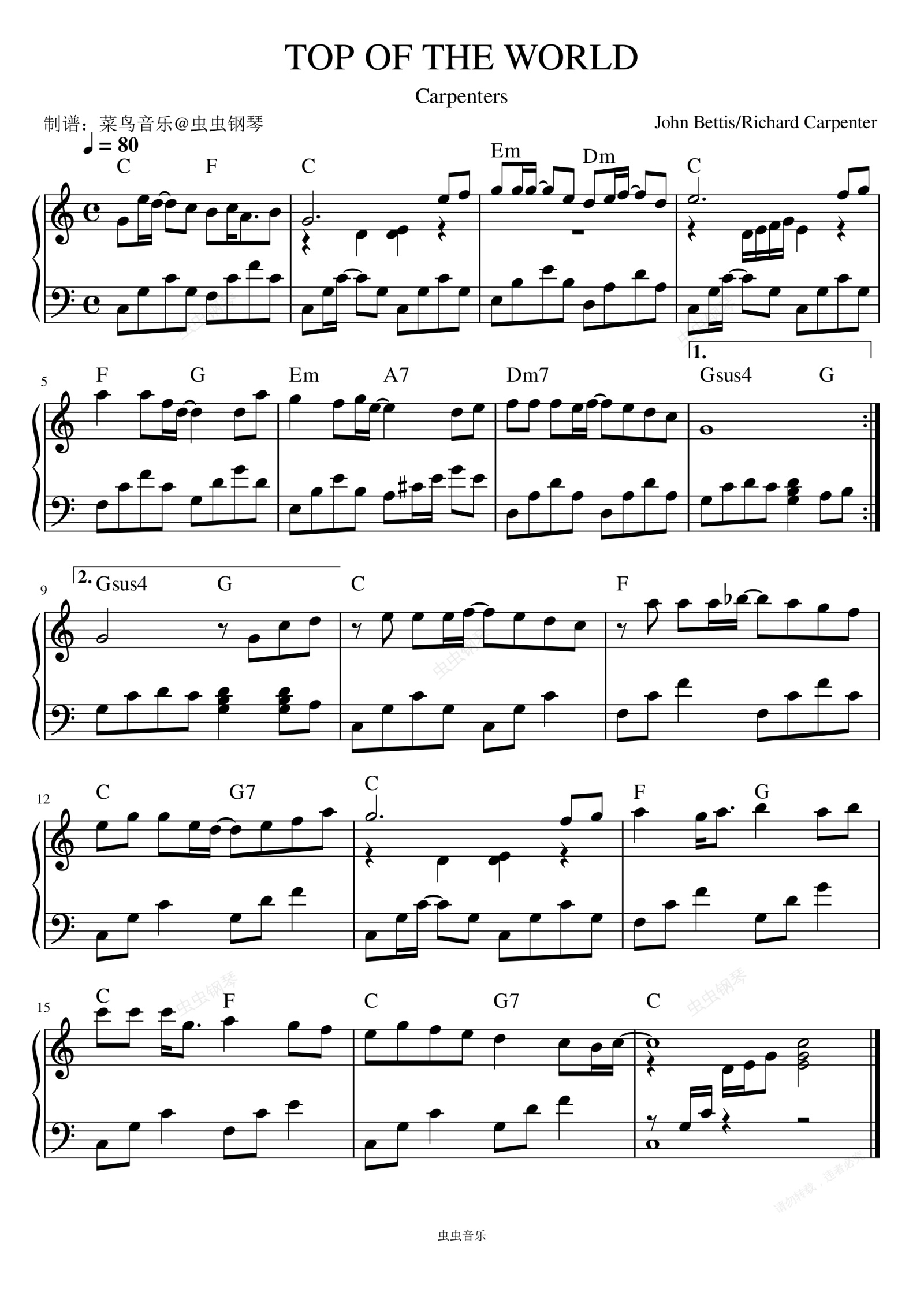 钢琴谱:Top Of The World - Carpenters (卡朋特乐队)/Royal Philharmonic Orchestra (英国皇家爱乐乐团)