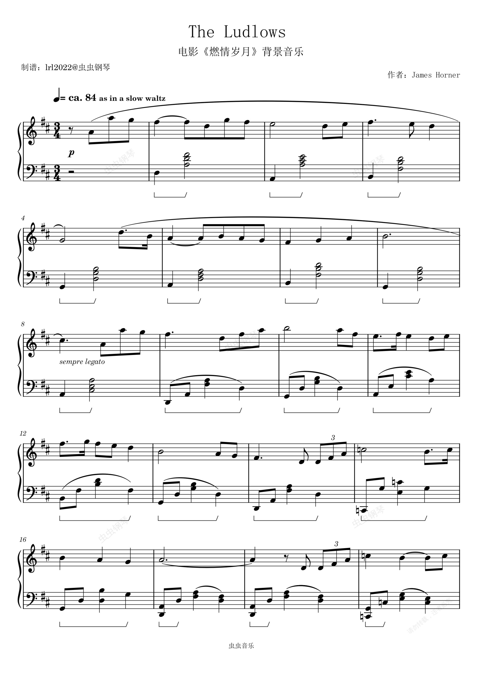钢琴谱:The Ludlows - 电影《燃情岁月》背景音乐 - 钢琴独奏