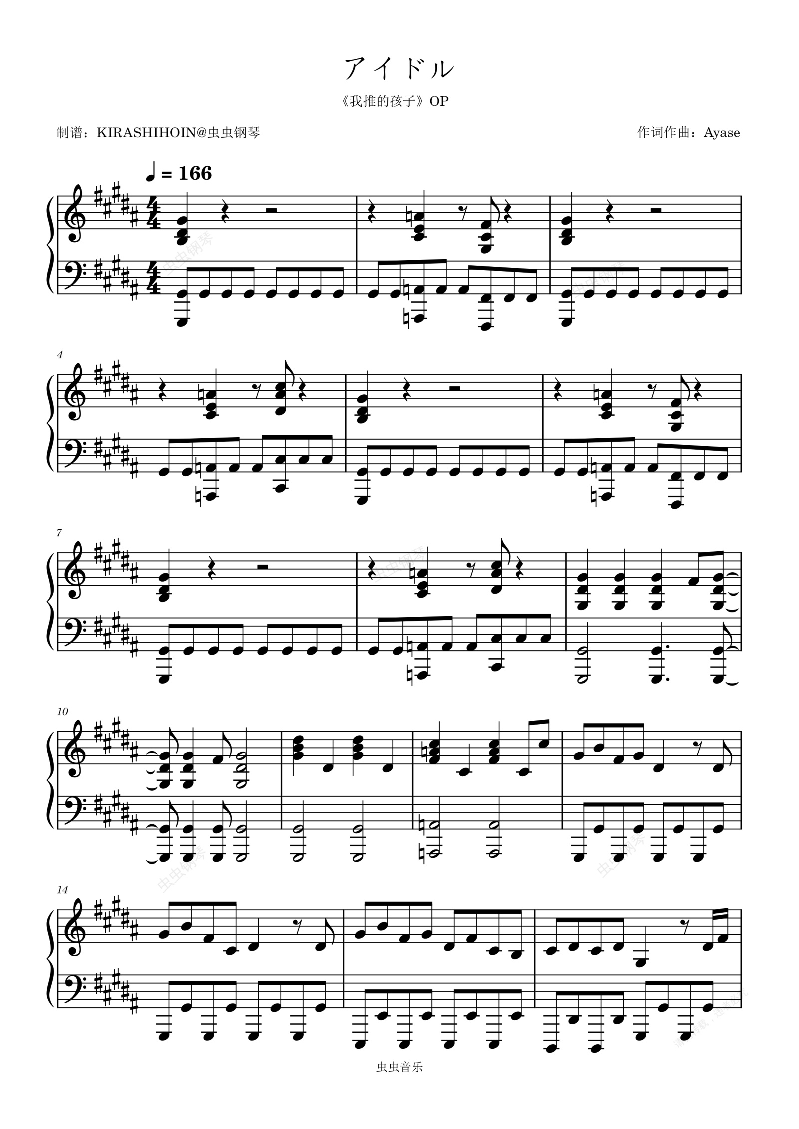 钢琴谱:アイドル(《我推的孩子》OP/片头曲TV版)- YOASOBI