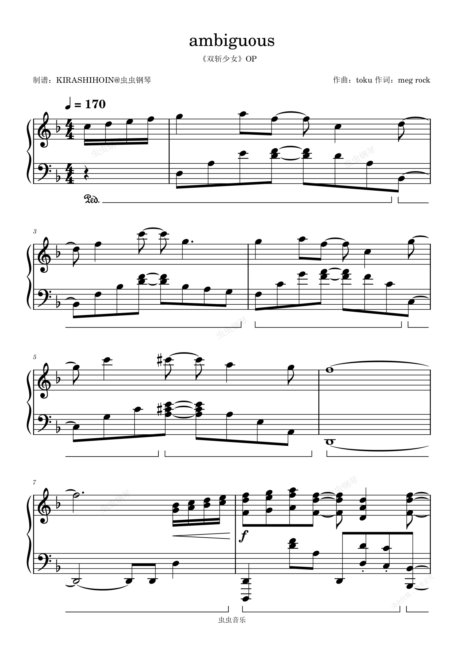 钢琴谱:ambiguous(《双斩少女》OP/片头曲)- GARNiDELiA