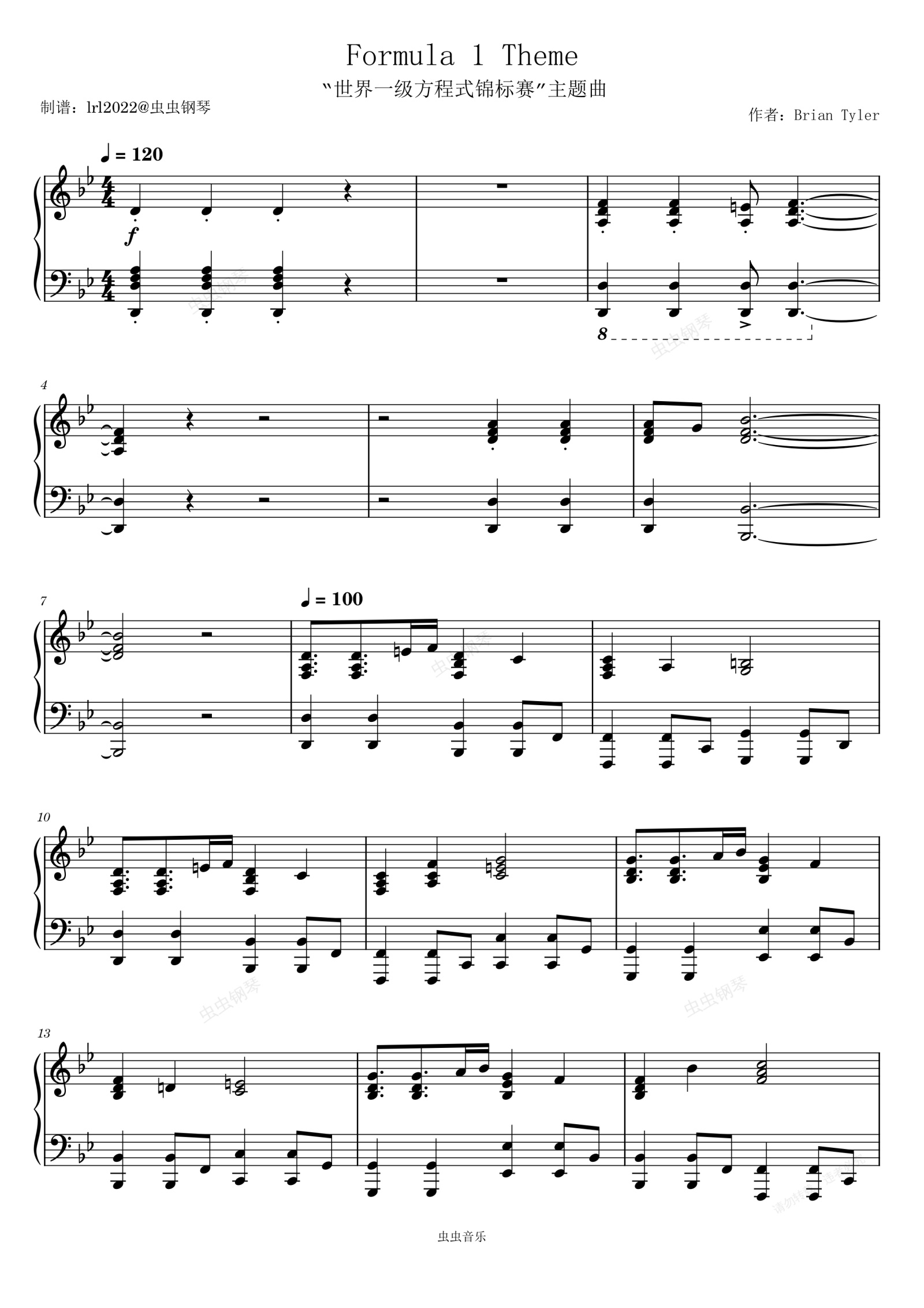 钢琴谱:Formula 1 Theme - “世界一级方程式锦标赛”主题曲 - 钢琴独奏