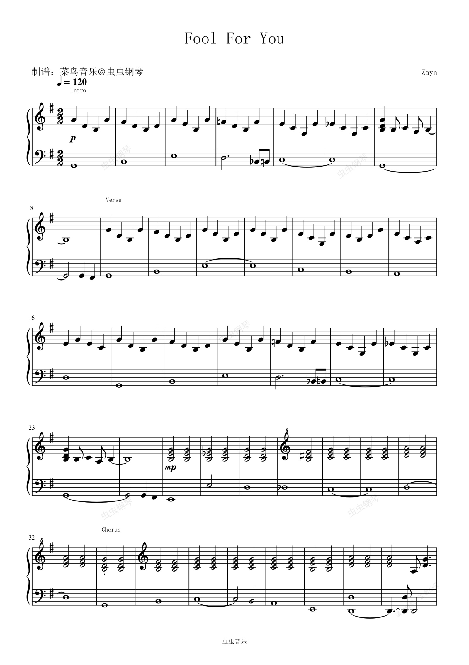 钢琴谱:fooL for You - ZAYN (泽恩)
