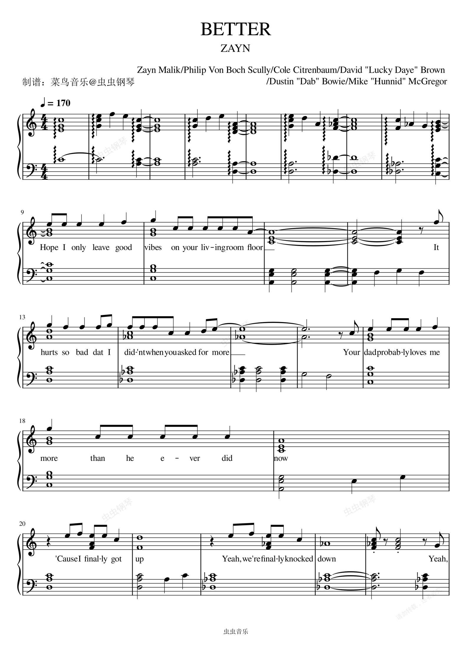 钢琴谱:Better - ZAYN (泽恩)
