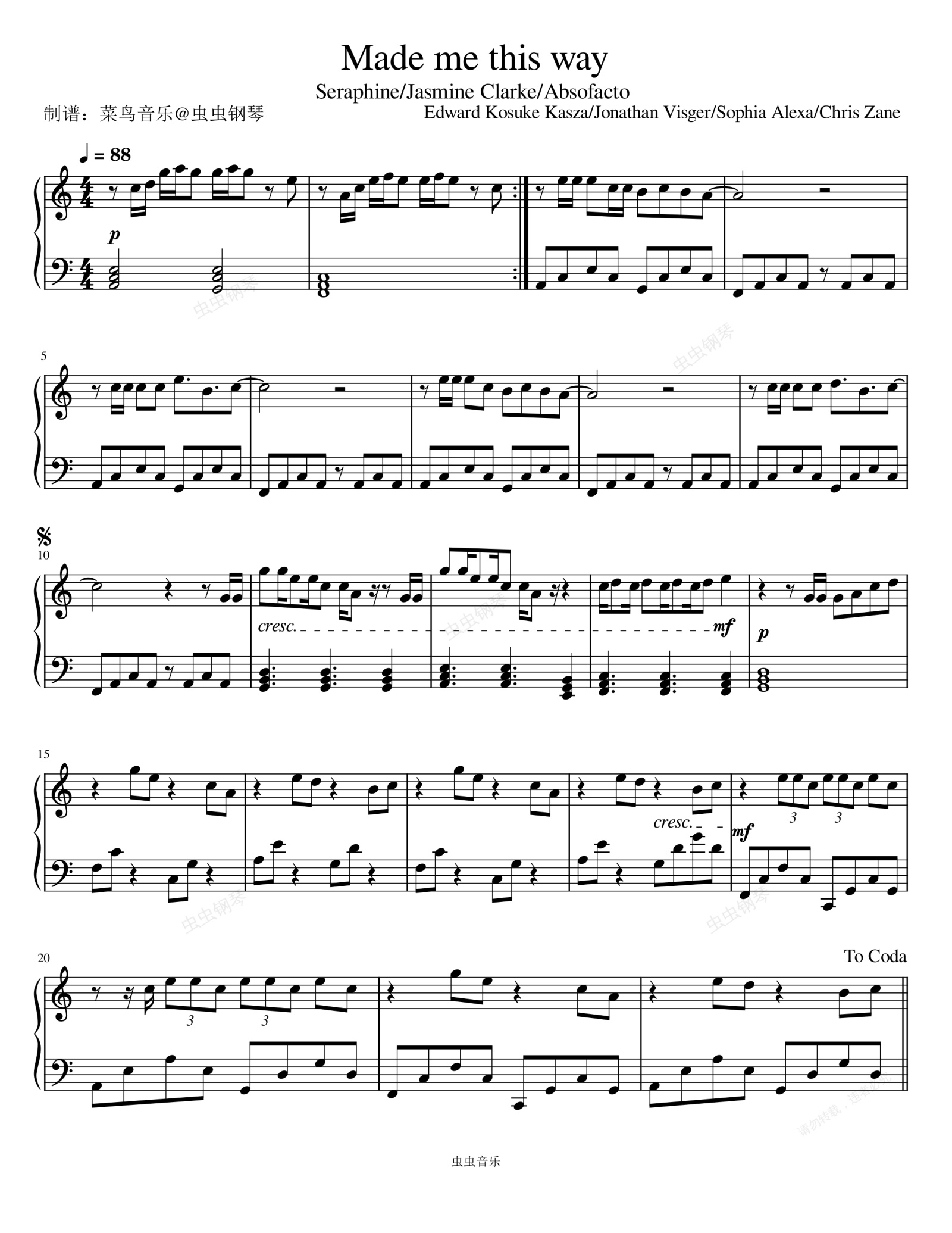 钢琴谱:Made Me This Way - Seraphine/Jasmine Clarke/Absofacto