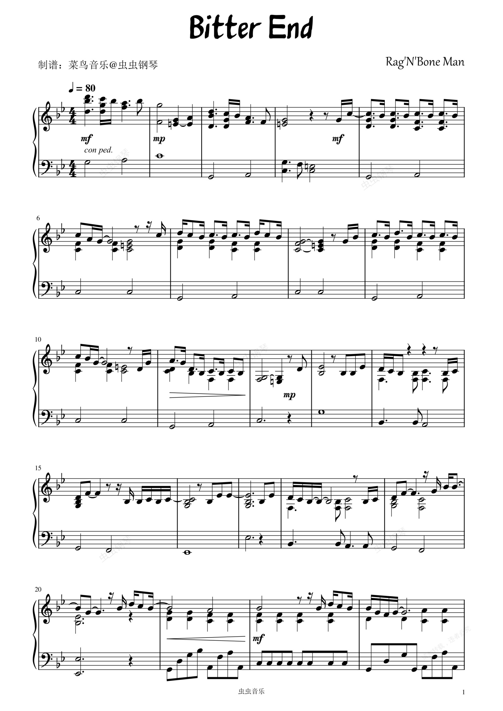 钢琴谱:Bitter End - Rag'N'Bone Man
