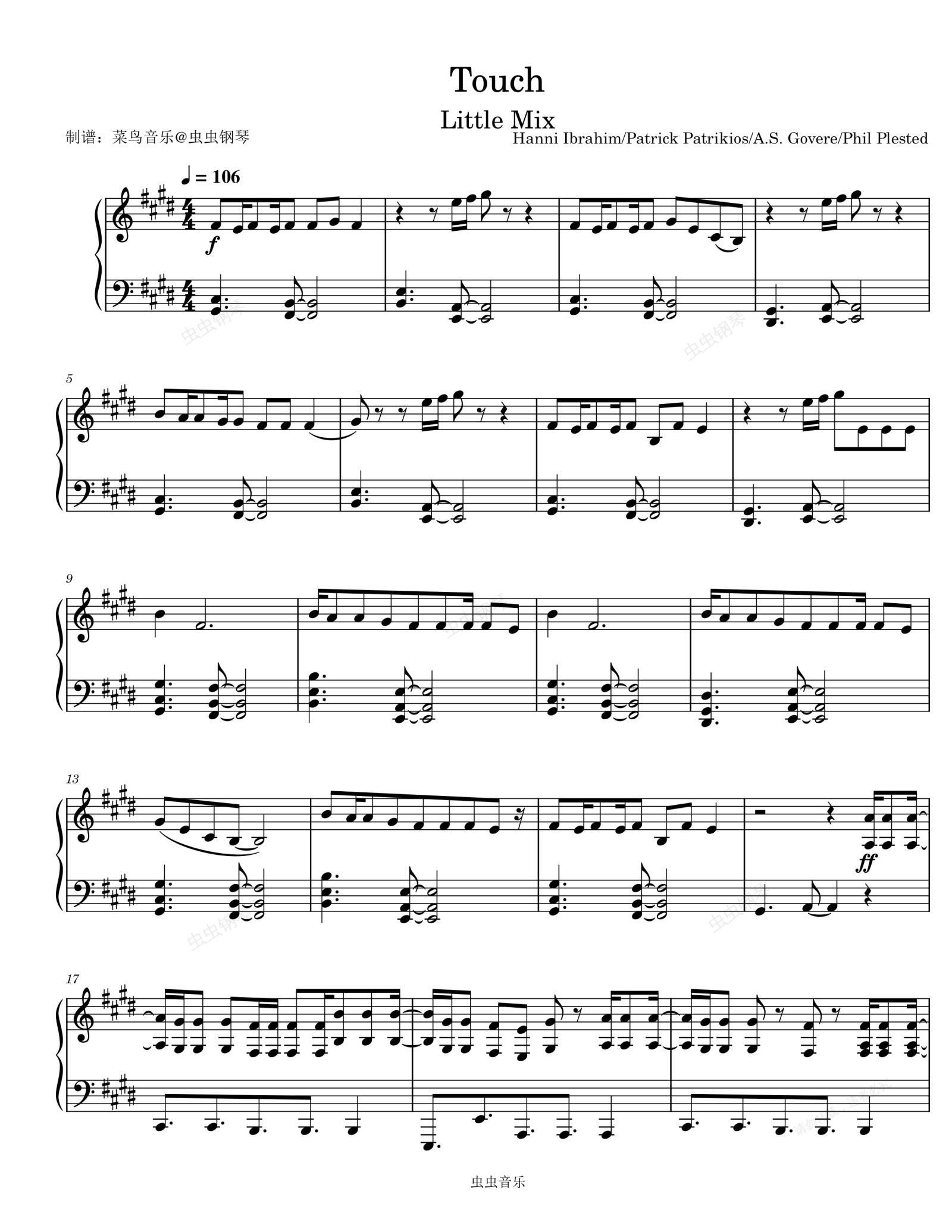 钢琴谱:Touch - Little Mix