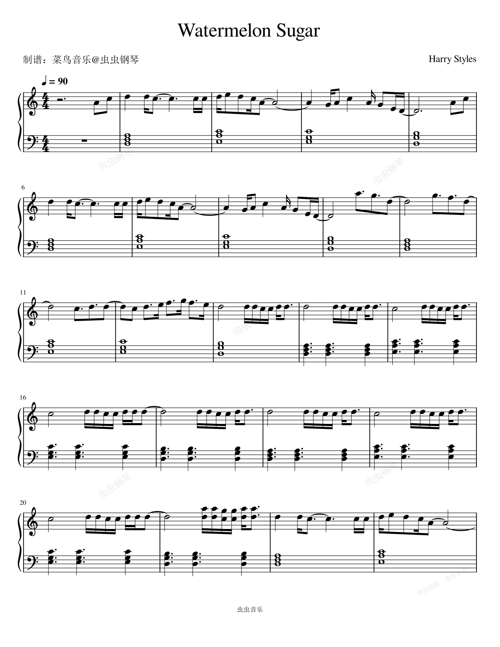 钢琴谱:Watermelon Sugar - Harry Styles (哈里·斯泰尔斯)