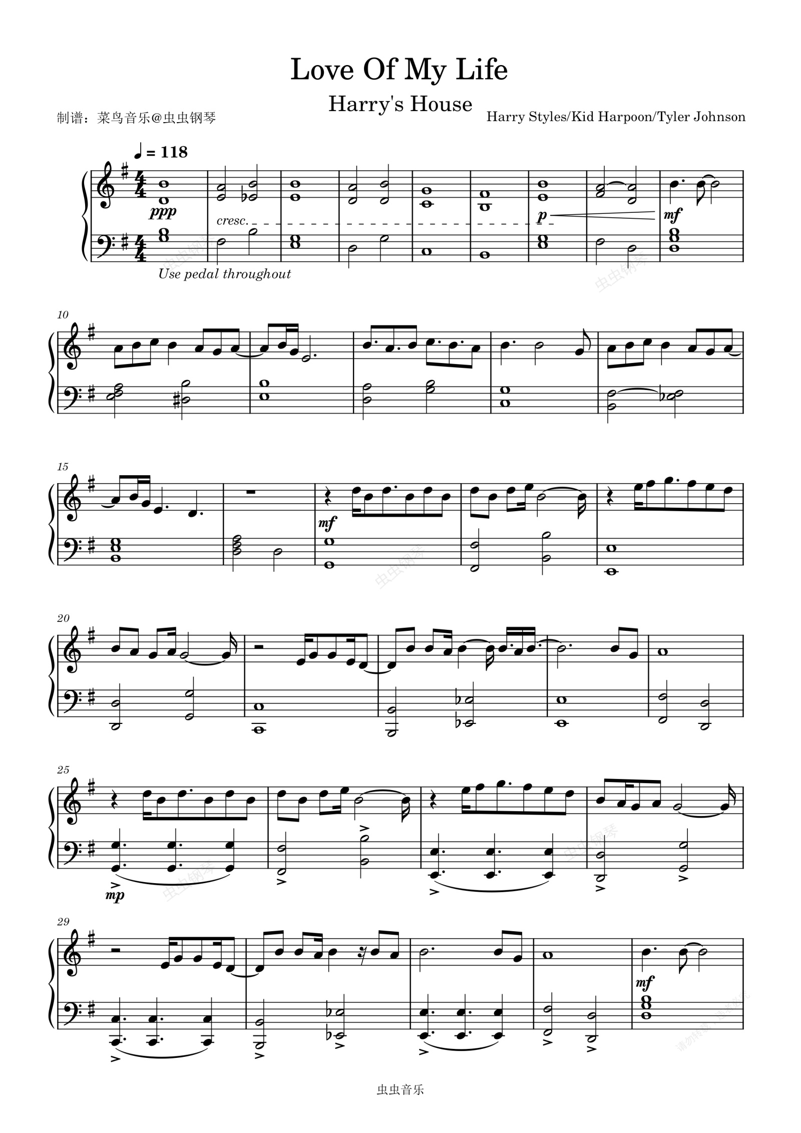 钢琴谱:Love Of My Life - Harry Styles (哈里·斯泰尔斯)