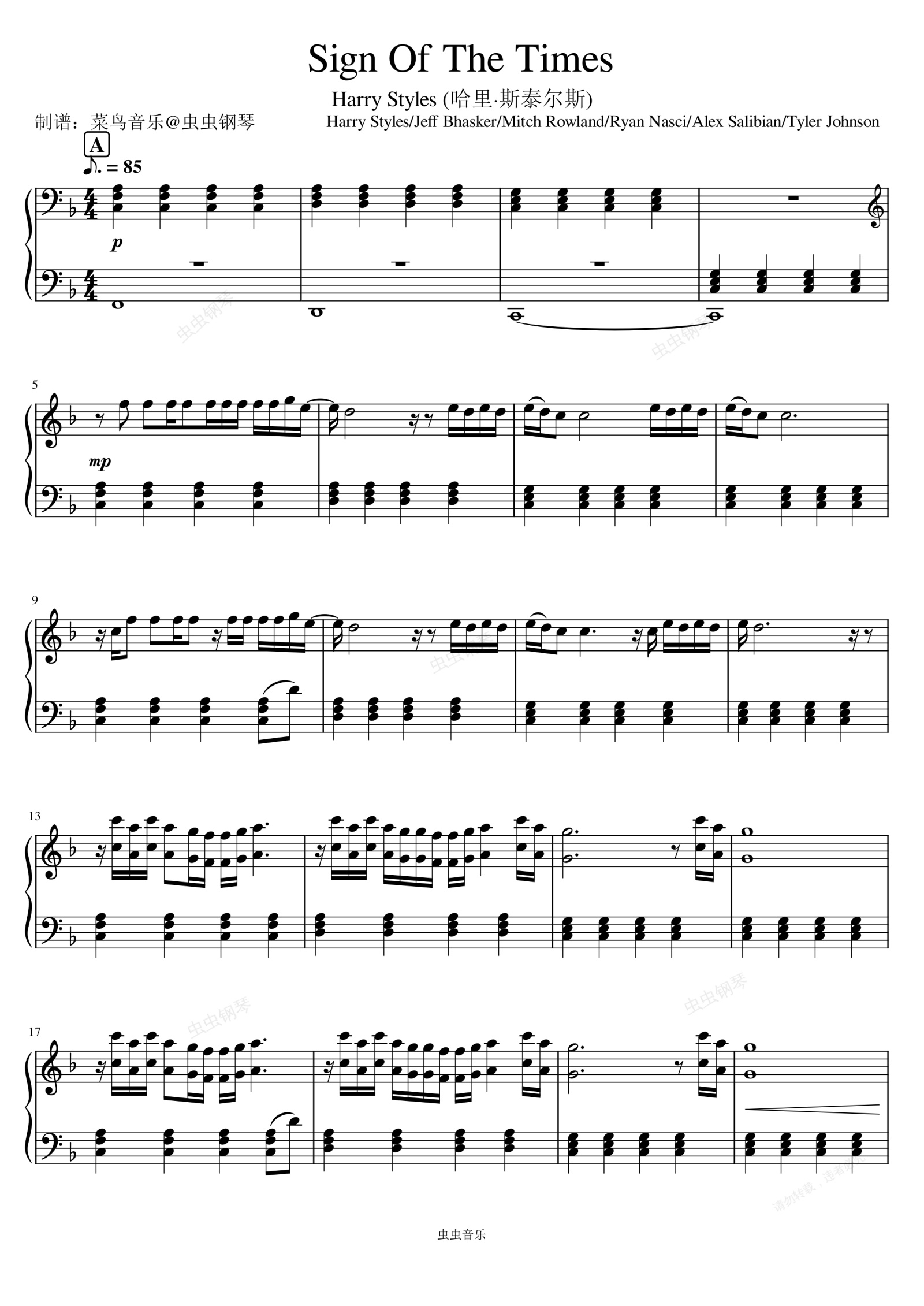 钢琴谱:Sign of the Times - Harry Styles (哈里·斯泰尔斯)