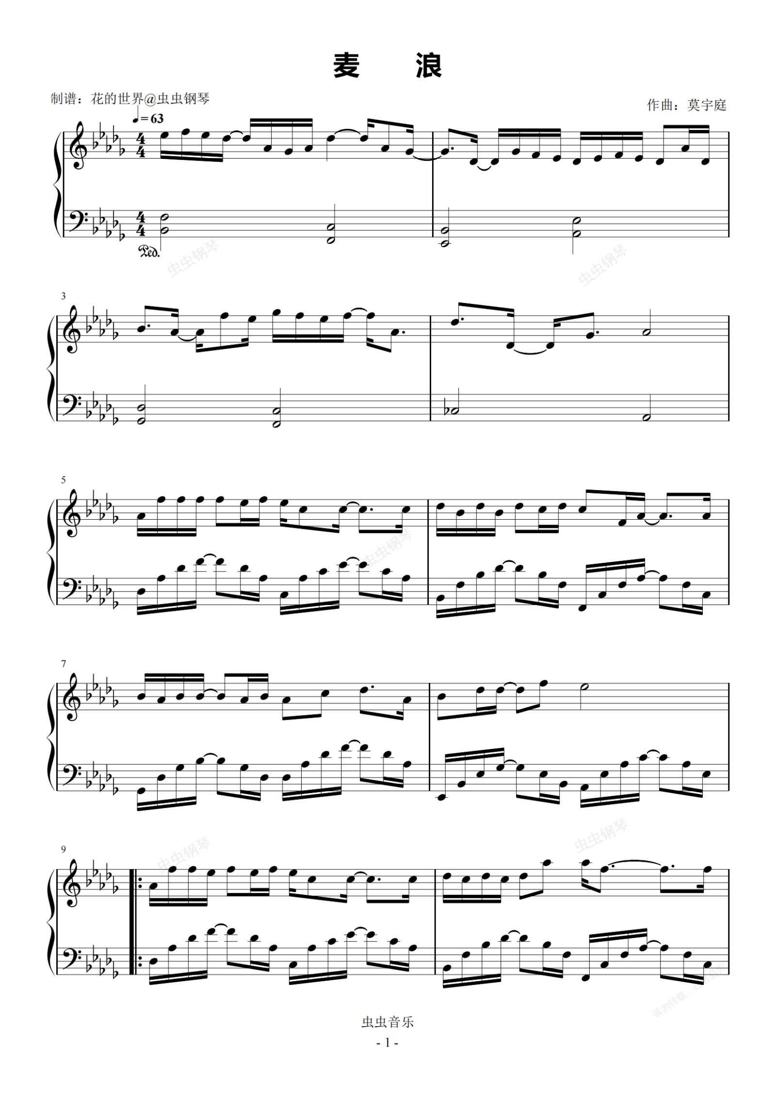 钢琴谱:麦浪 原调简易版 yihuik苡慧