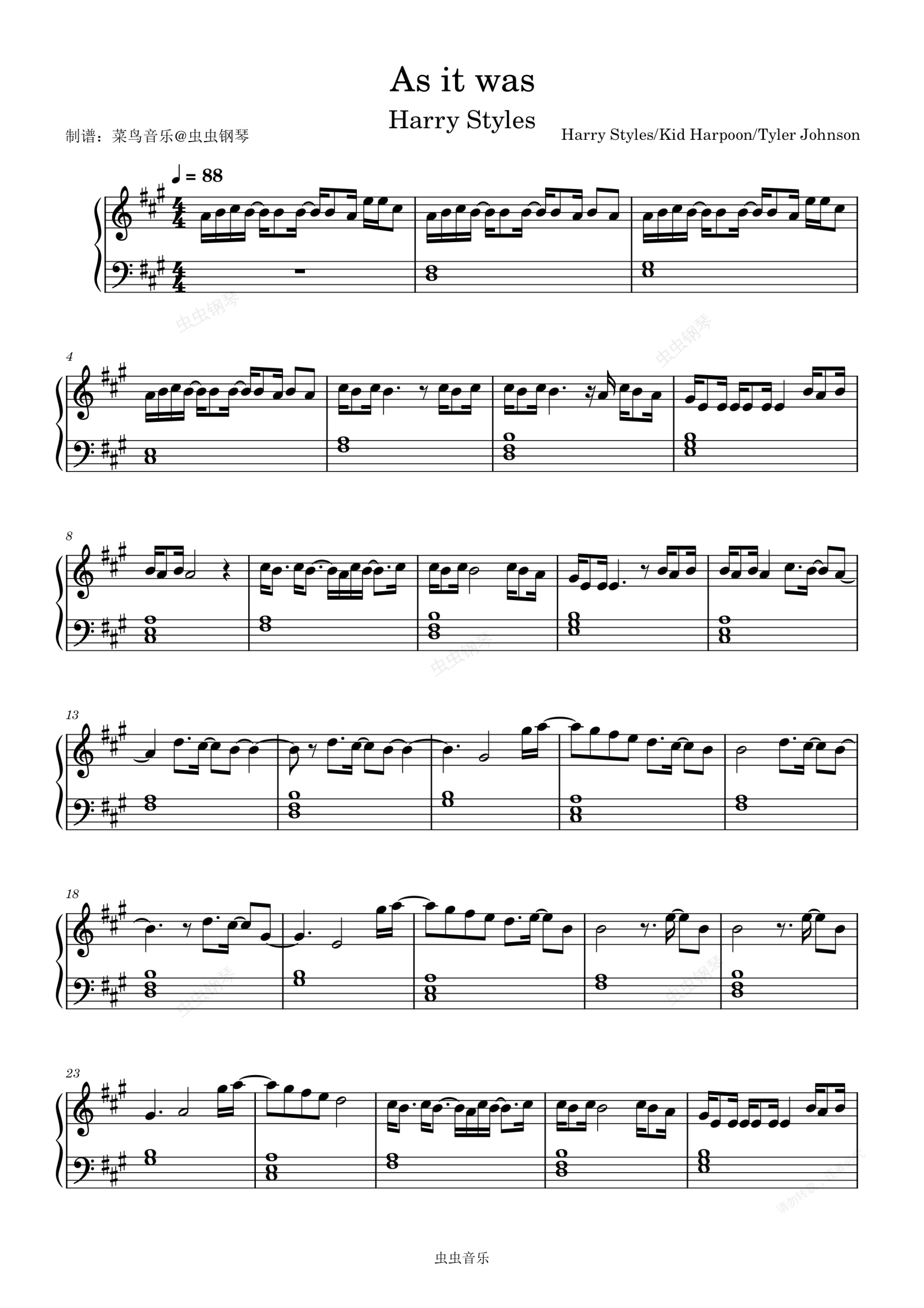 钢琴谱:As It Was - Harry Styles (哈里·斯泰尔斯)