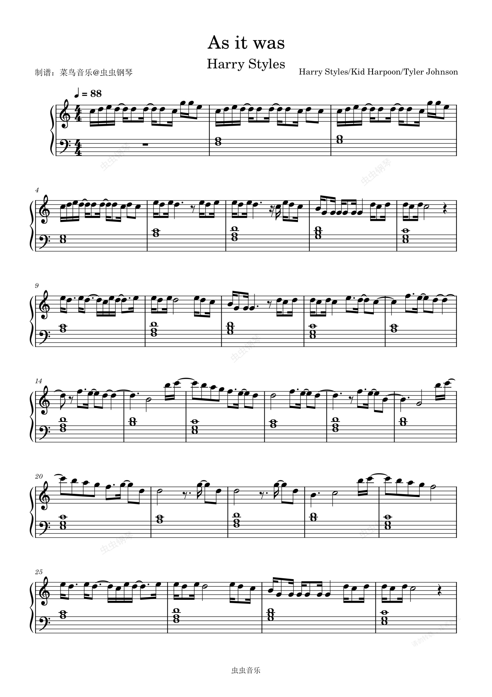 钢琴谱:As It Was - Harry Styles (哈里·斯泰尔斯)