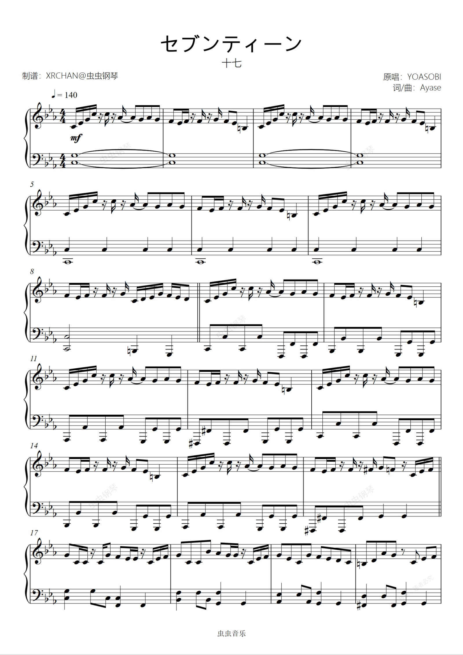 钢琴谱:YOASOBI 「セブンティーン」 (十七)初级