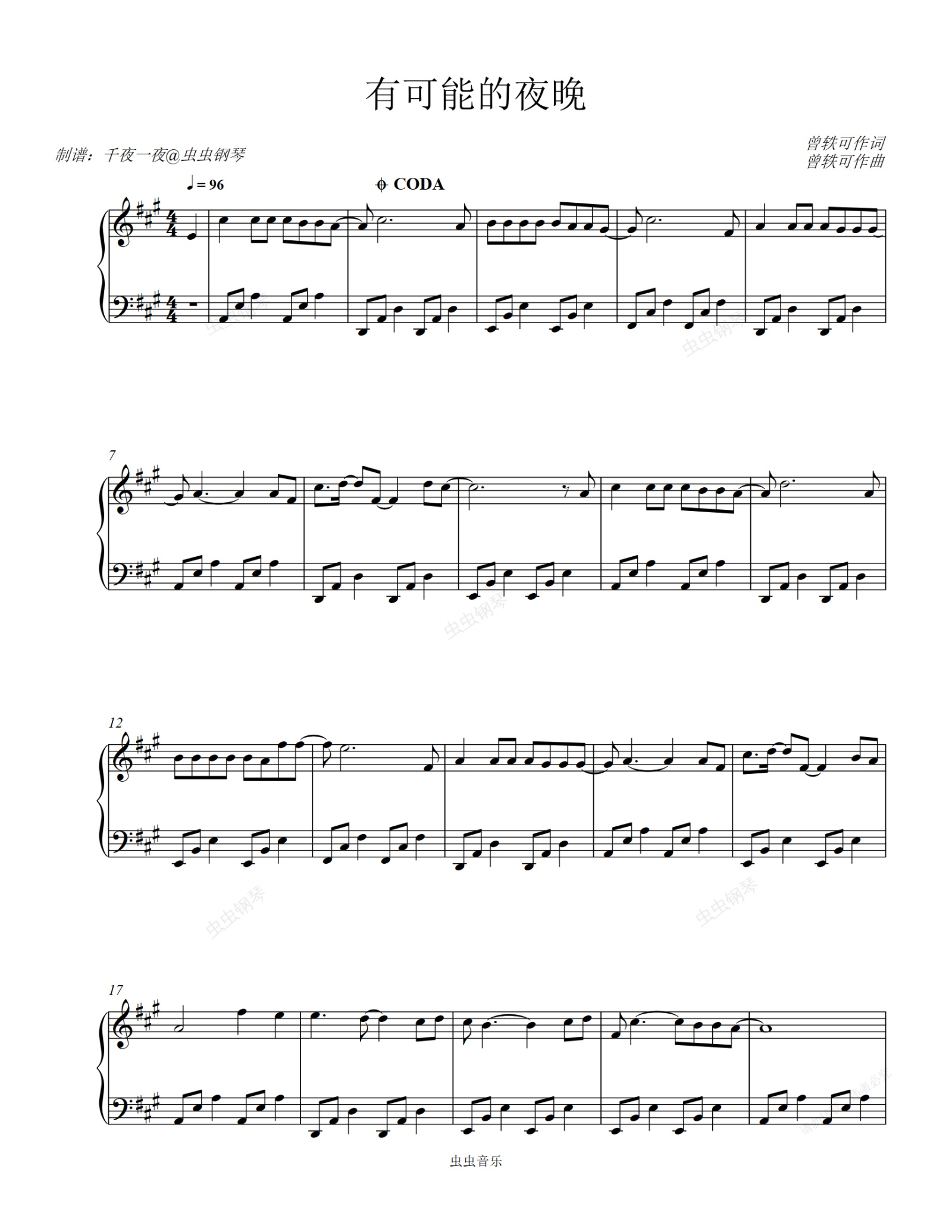 钢琴谱:曾轶可——《有可能的夜晚》| 钢琴