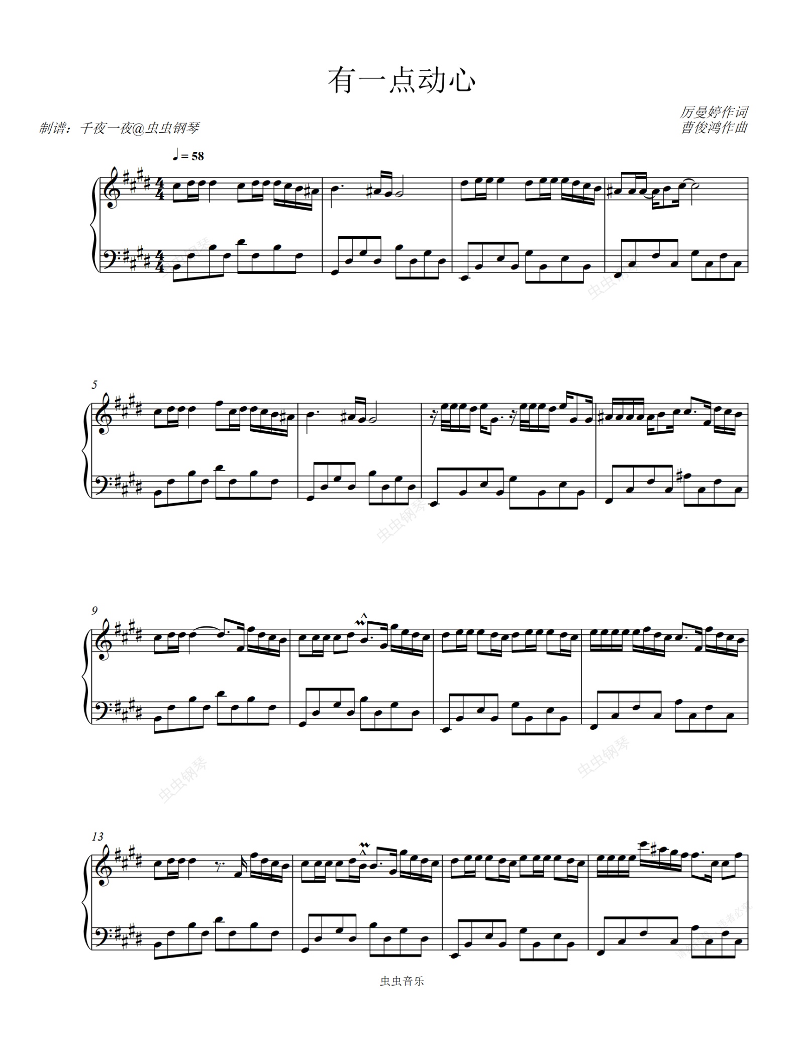 钢琴谱:经典老歌《有一点动心》