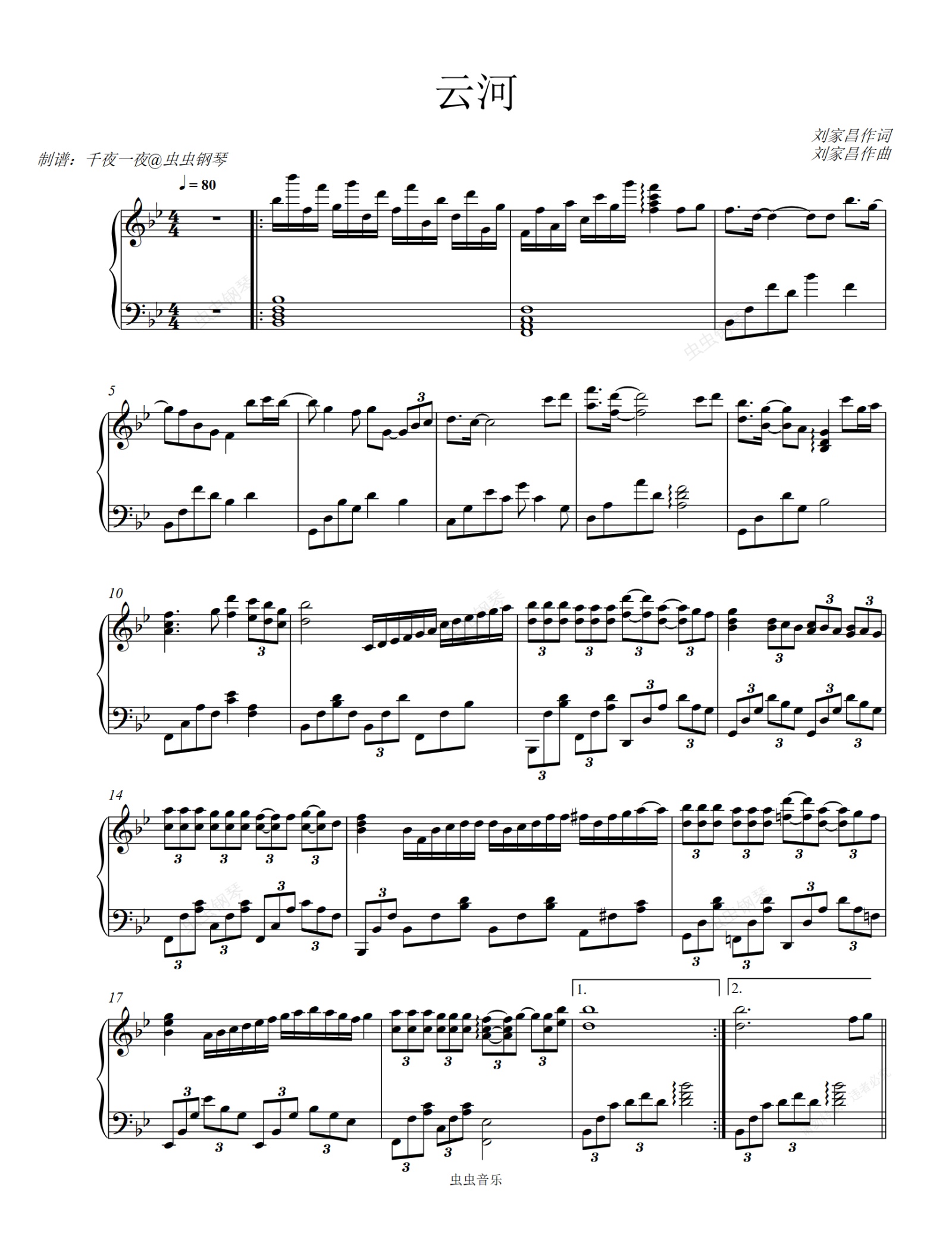 钢琴谱:邓丽君演唱经典歌曲《云河》
