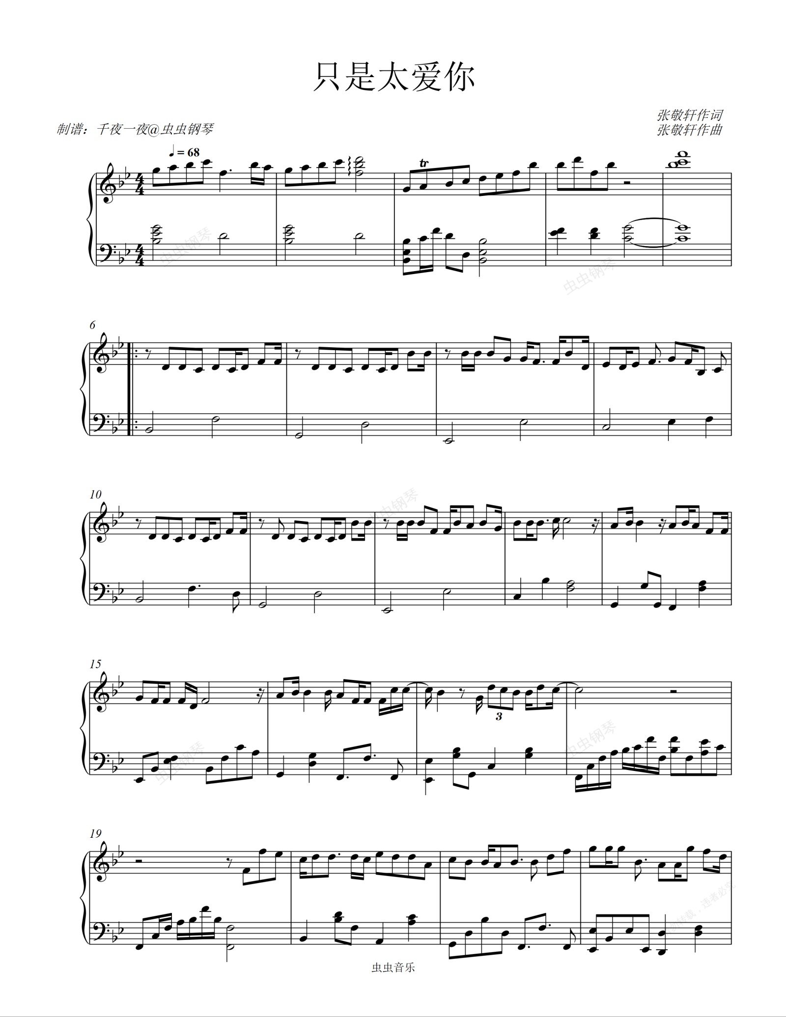 钢琴谱:只是太爱你 钢琴版 (主唱: 张敬轩 )