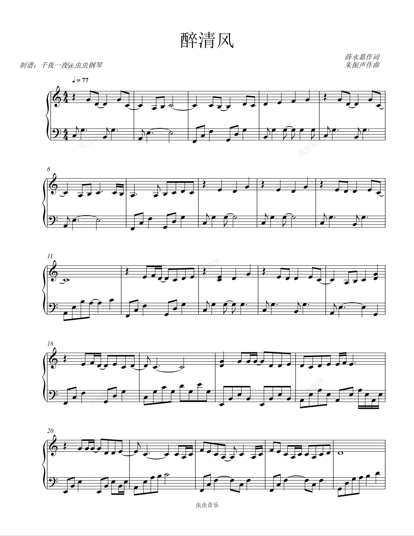 钢琴谱:弦子 - 醉清风 (鋼琴版)