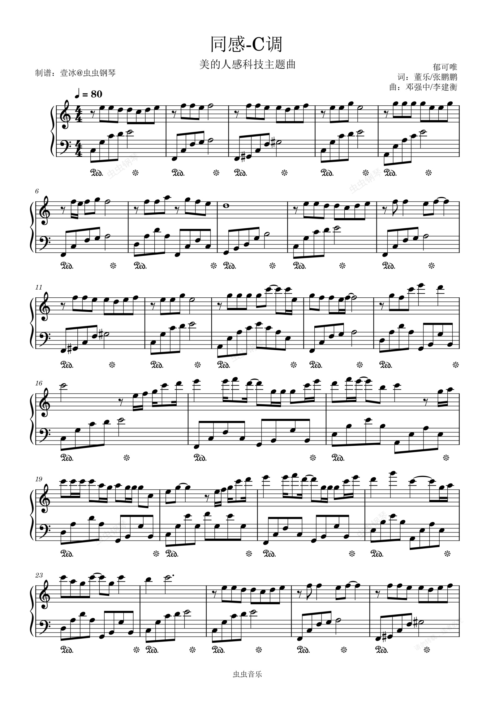 钢琴谱:同感//美的人感科技主题曲-C调