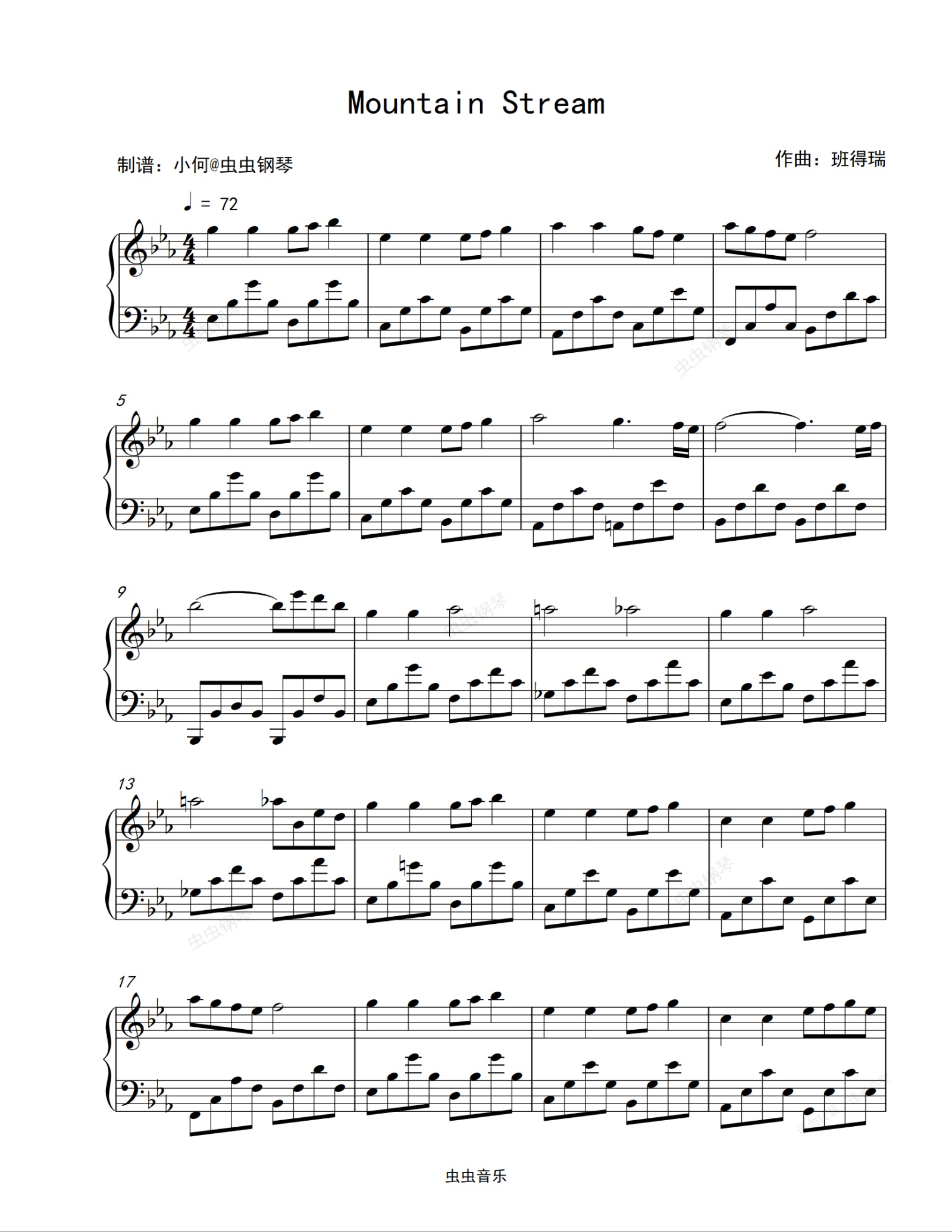 钢琴谱:山溪Mountain Stream-《春野》班得瑞