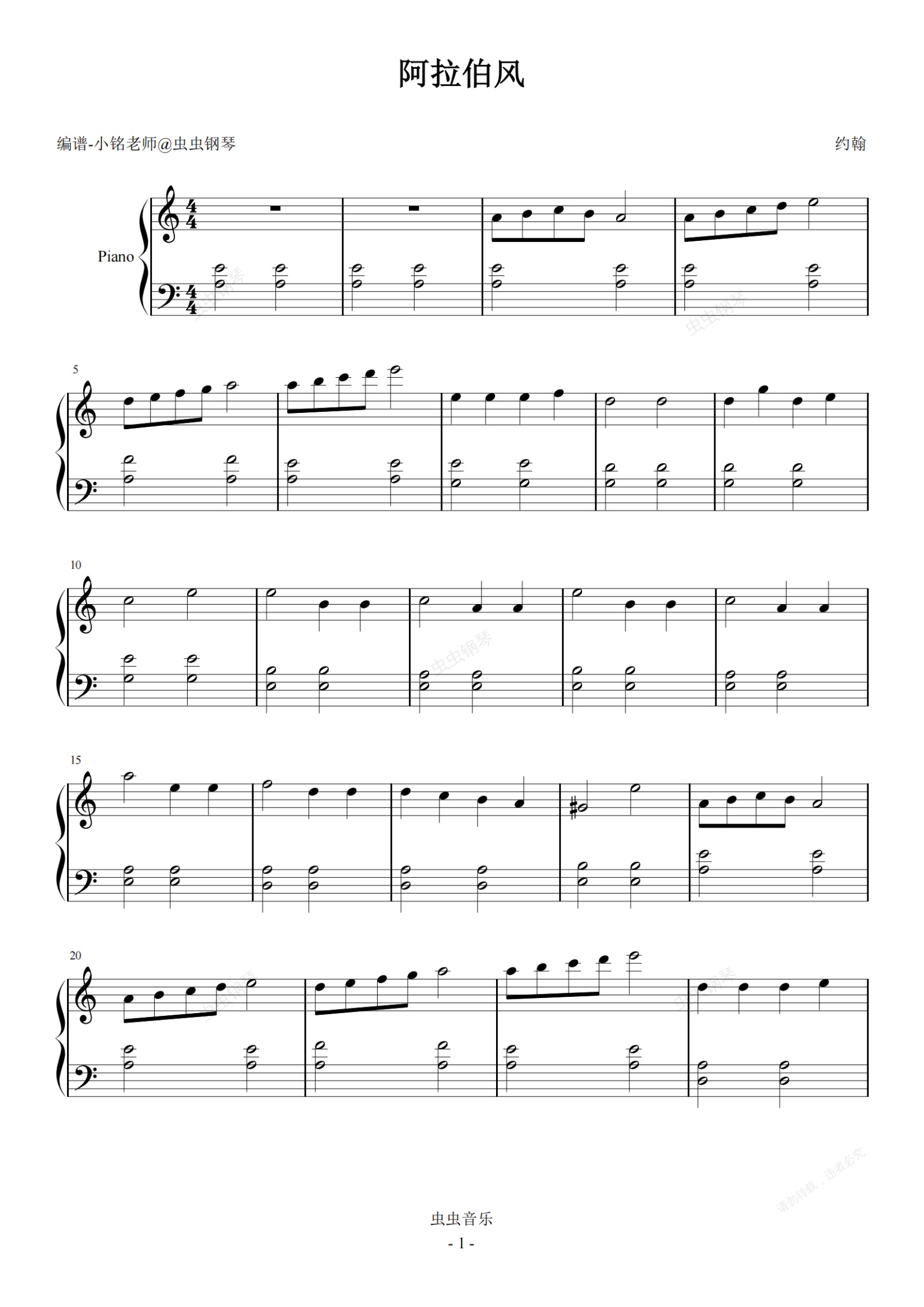 钢琴谱:阿拉伯风【简易 启蒙版】