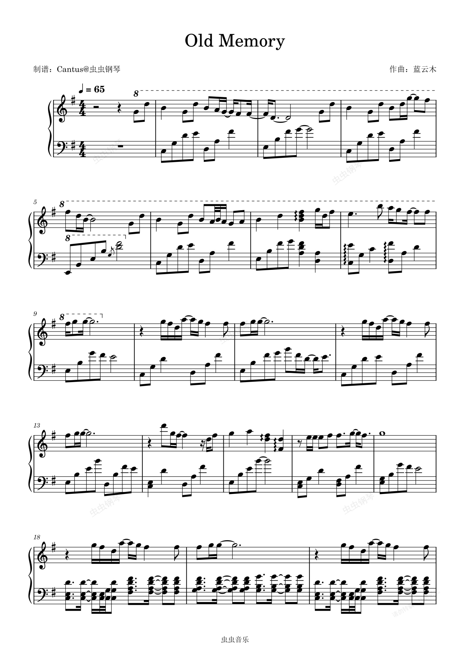 钢琴谱:Old Memory-蓝云木