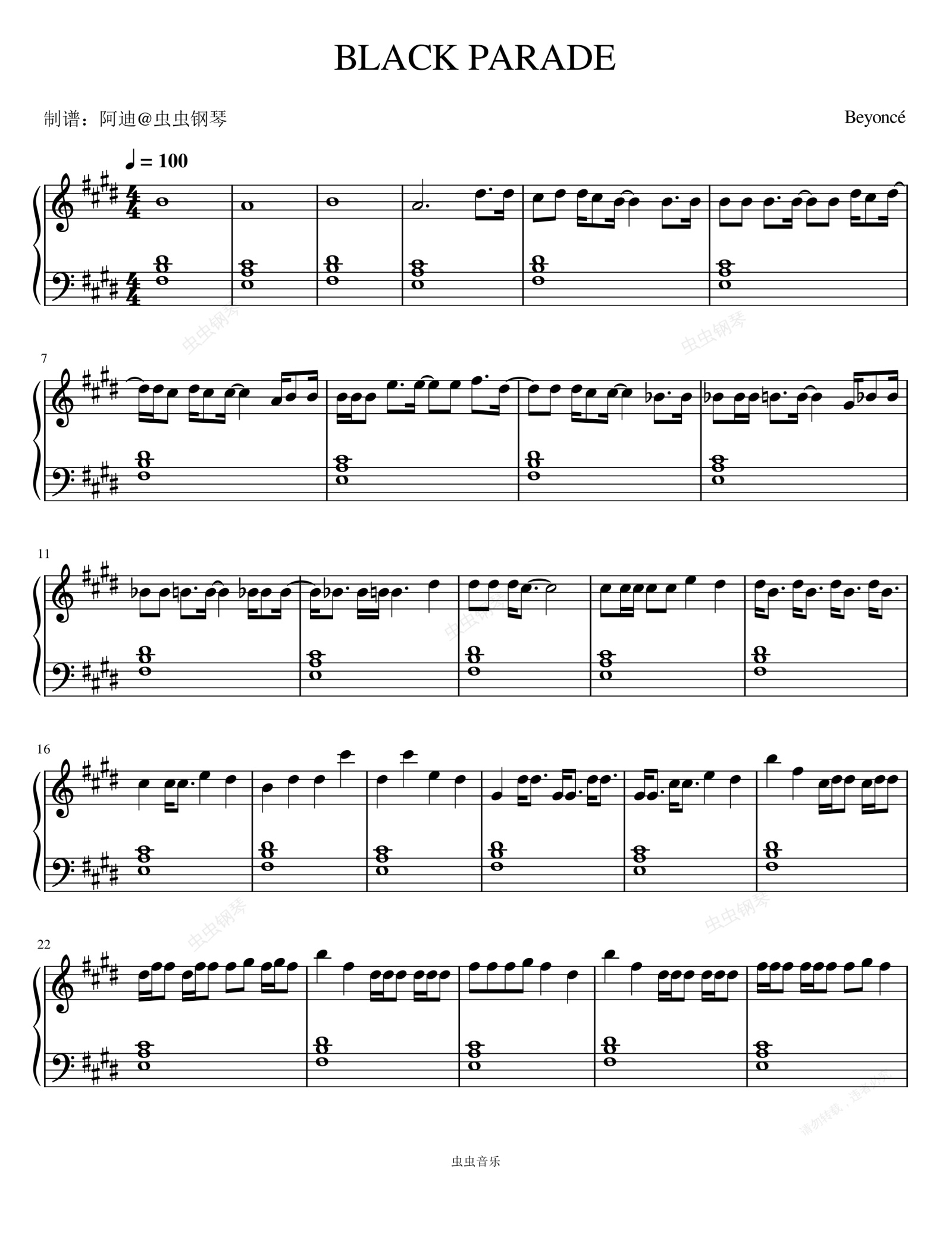 钢琴谱:BLACK PARADE (Explicit) - Beyoncé (碧昂丝)