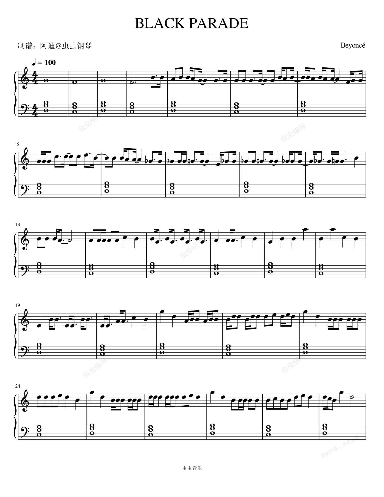 钢琴谱:BLACK PARADE (Explicit) - Beyoncé (碧昂丝)